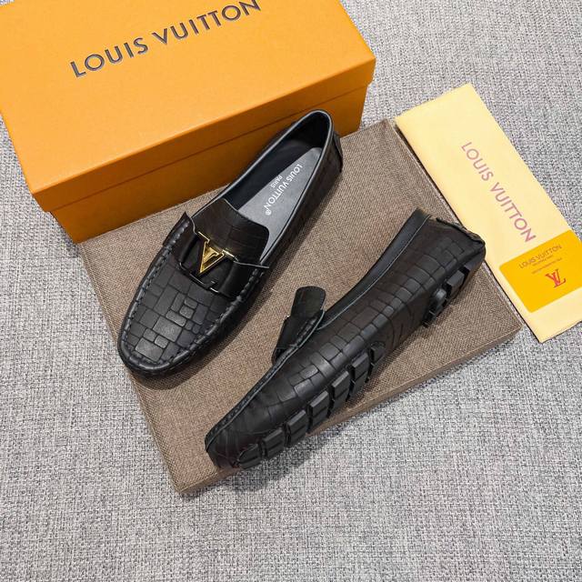 New arrival from the official Louis Vuitton website. Founded in Florence in 1921, Louis Vuitton is one of the world's leading luxury brands. Its unique creativity and innovation have captivated the globe. Gucci's timeless and classic style has always been favored by celebrities and is a darling of the world's high society. Louis Vuitton is renowned for its high-end luxury. The upper is made of original Italian brown cowhide, comfortable and breathable, with genuine cowhide lining. Extremely beautiful and stunning, a brand can deeply resonate with you, and a pair of shoes can make you linger. Wearing these shoes not only exudes prestige but also an aura of confidence. Standard sizes 37-46.