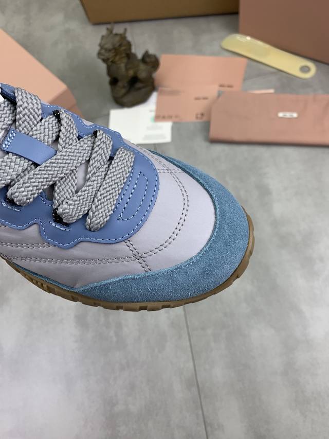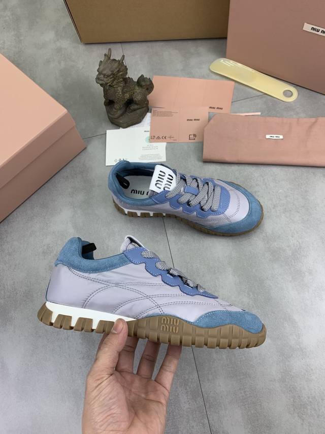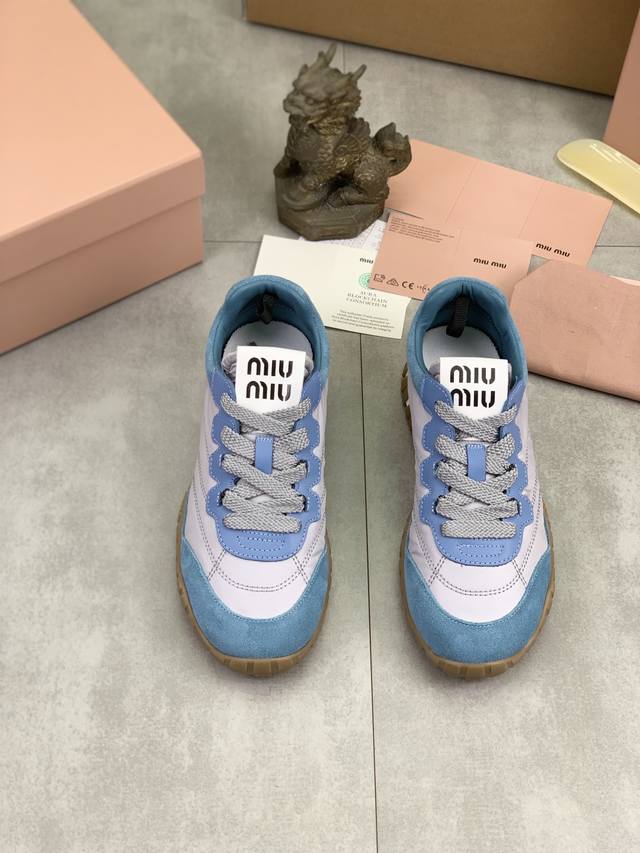 Factory price, top-tier version Miu Miu x New Balance NB530 casual sports shoes, Forrest Gump shoes, German training shoes. Original purchase, developed and manufactured. Miu Miu x New Balance NB530 sneakers draw inspiration from their classic NB530 sneakers to create their own iteration, the 530SL. This sneaker features a deconstructed and lightweight design, available in brown and beige colorways. Vintage-looking fabric covers the New Balance 530 silhouette, with deliberately distressed, uneven leather tones adding a unique personality. This collaboration features a double-lace design, including white, orange, brown, and yellow laces, creating a casual tying feel and adding a touch of boyishness and chicness. Material: Original custom imported top-grain cowhide. Lining: Original imported lining. Sole: Original molded non-slip rubber sole. Sizes: Women's 35-40 with shipping box.
