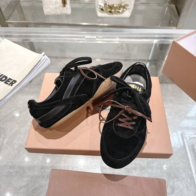 Top-tier factory version Miu Miu x New Balance sneakers. Exclusive new color and mesh upper. Love it! Double lace design. Note the laces!! The original is navy blue, not black!! No copying based on pictures! Super cool! The new collaboration with New Balance was revealed at the fashion show , based on the 530 design. The upper is crafted from high-quality cowhide, giving it a very premium feel. The laces feature the currently popular double laces. Upper: Suede leather. Lining: Leather. Size: 35-40. 40.41 Made to order, no returns or exchanges. Buy now!