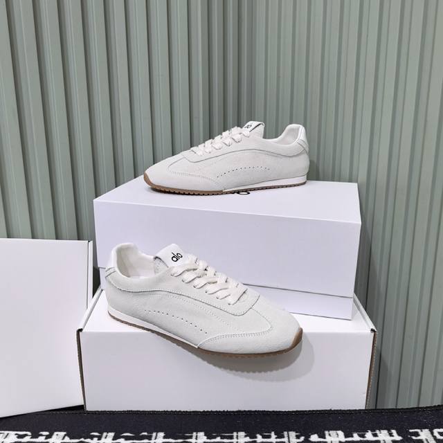 Alo understands women better than Nike! Super versatile! And super comfortable! The thin-soled style feels so comfortable! Very lightweight! Even better with socks! Also recommended by celebrities, they make your legs look super slimmer! Perfect for petite girls like us! The shoes feature a classic cow suede design with a delicate textured upper!