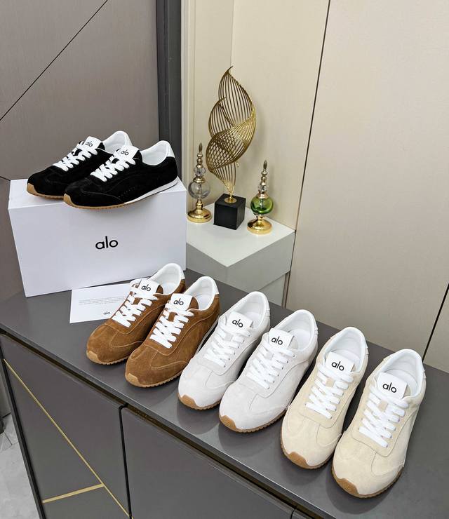 Alo25Ss New German Training Shoes, Comfortable Sporty Casual Style, Cornetto Shoes DDD Alo understands women better than Nike! Super versatile and super comfortable! The thin sole makes them lightweight and not heavy at all! They look even better with socks! Plus, they're a celebrity-recommended style~ They make legs look super slim! Perfect for petite women~ The shoes feature a classic suede design with a delicate textured upper! DDD Material: Imported suede DDD Lining: Sheepskin lining DDD Outsole: 1:1 replica outsole DDD Sizes: Women's sizes 35-40, factory price p DDD Sizes: Men's sizes 39-45, factory price p DDD