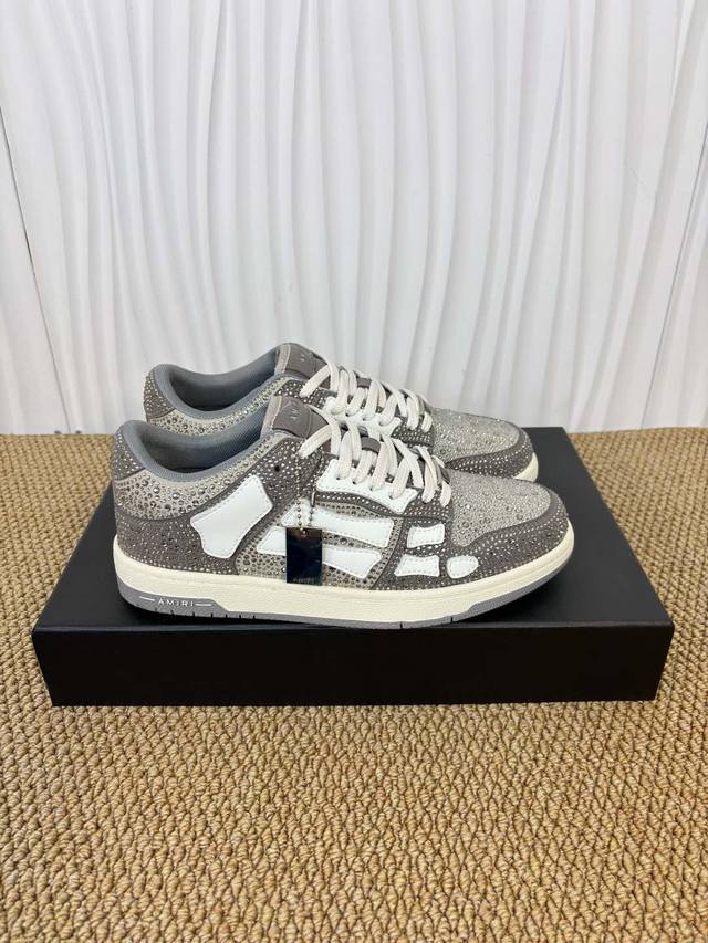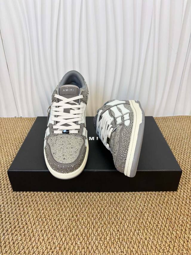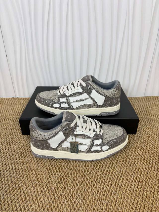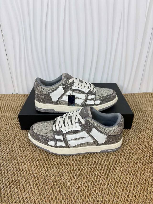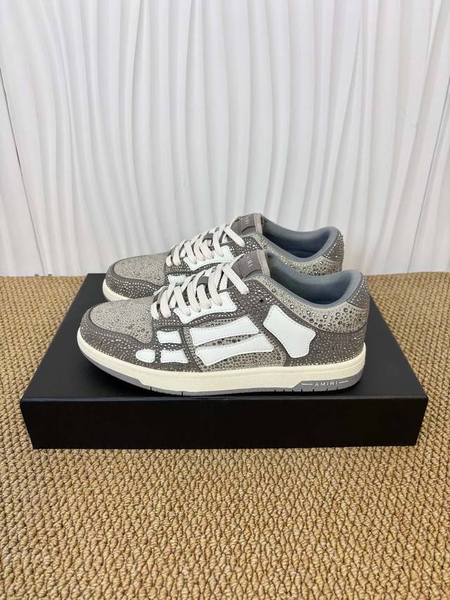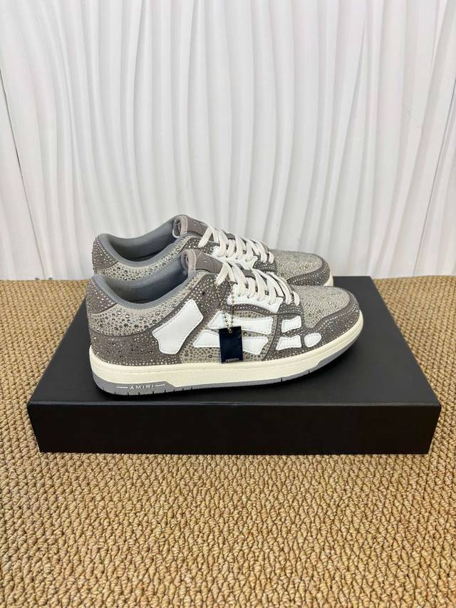 Factory direct women's shoes, sports shoes, original single style, Amiri, popular couple's bone shoes. A leader in casual fashion. Exclusive popular bone shoes from the Los Angeles high-street brand, worn by many celebrities and internet influencers. Featured by Chinese rapper Xiaobai Gali, Wang Yibo, Yang Mi, and other internet celebrities. Features include: AJ1 silhouette with 3D skull and bone-like details on the side; original custom-made top-grain cowhide, double-layer bone design, handmade edge finishing; exclusive custom-made Nike lining (unmatched); original molded injection-molded one-piece insole for comfort and no foot fatigue; original factory P1:1 molded three-color original outsole; sizes: couples 35-46.
