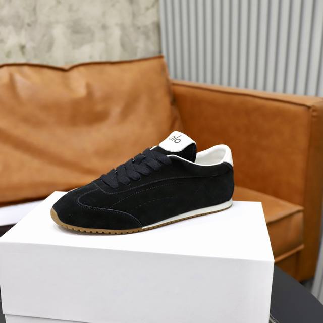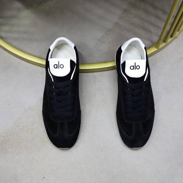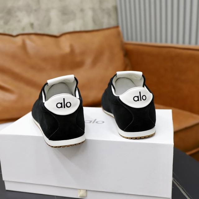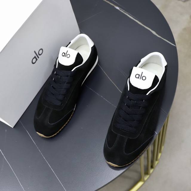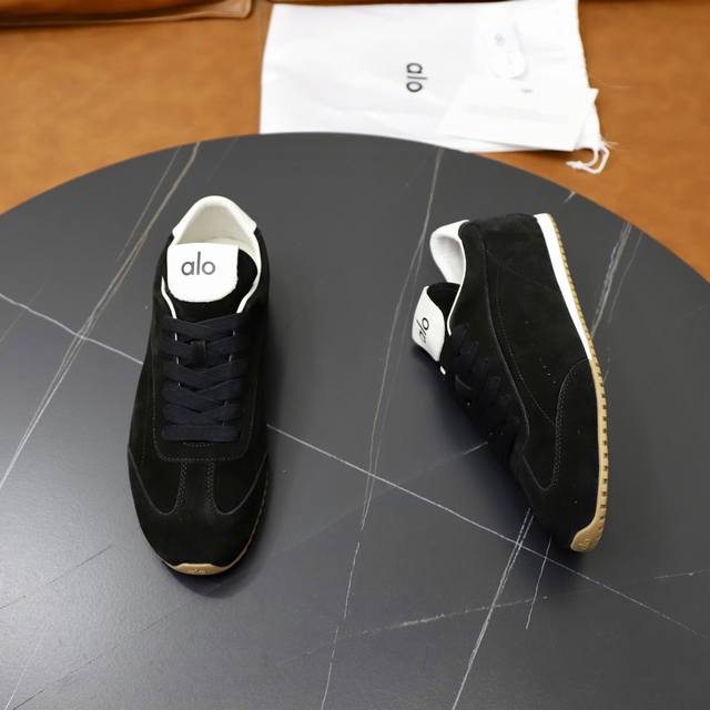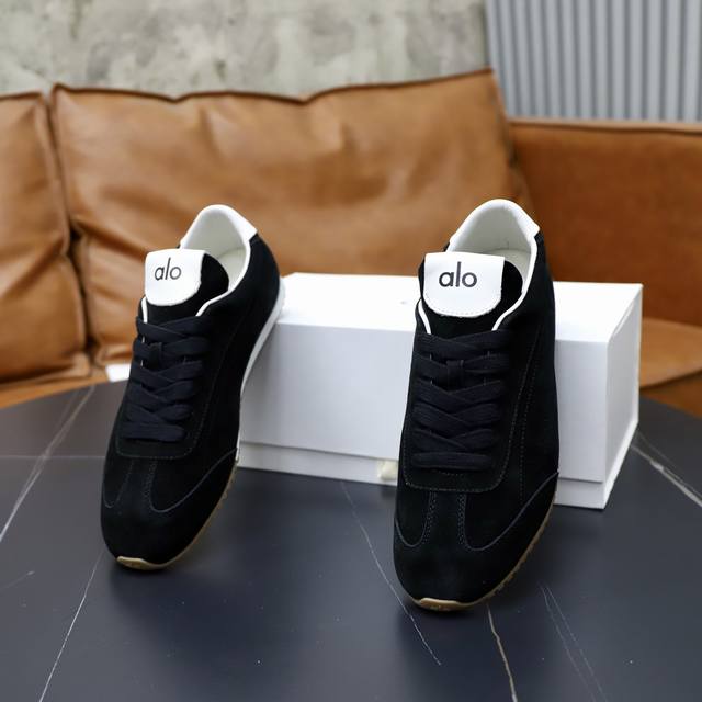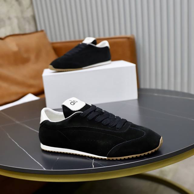 Factory Price (pp): Alo Couple's German Training Shoes, Comfortable and Casual Style. Alo understands women better than Nike! Super versatile and incredibly comfortable! Thin-soled design, not heavy at all! Also a celebrity-recommended style~ Makes legs look super slim! Perfect for petite women~ The shoes are made of classic cow suede with a delicate texture! Men's sizes: 35-44, size 45 (custom orders, no returns or exchanges).