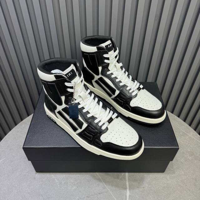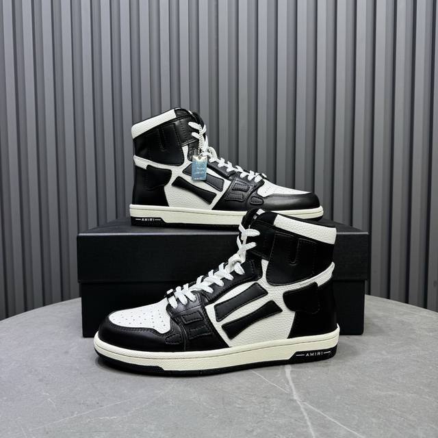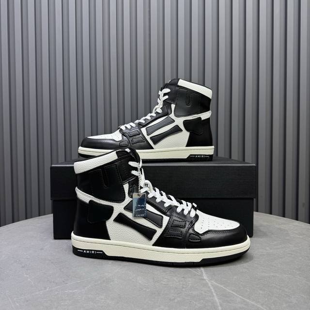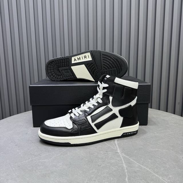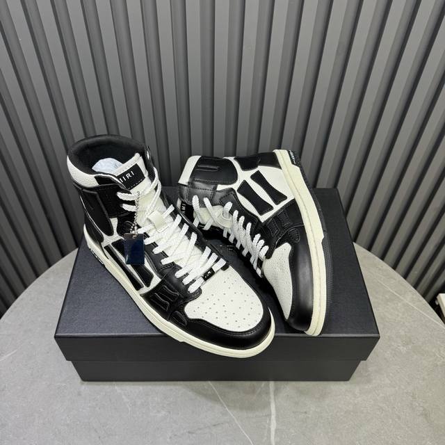 Real Price Amiri's Hot-Selling Couple Bone Shoes. A leader in casual fashion. Exclusive hot-selling bone shoes from the Los Angeles high-street brand, worn by numerous celebrities and internet influencers. Popular with Chinese rapper Xiaobai Gali, Wang Yibo, Yang Mi, and other influencers. Features include: AJ1 silhouette with 3D skull and bone-like details on the side; original custom-made top-grain cowhide with double-layer bone construction and hand-painted edges; exclusive custom-made Nike lining (unmatched); original molded injection-molded one-piece insole for comfort; and original factory p1:1 molded three-color original outsole. Sizes: 35-46.