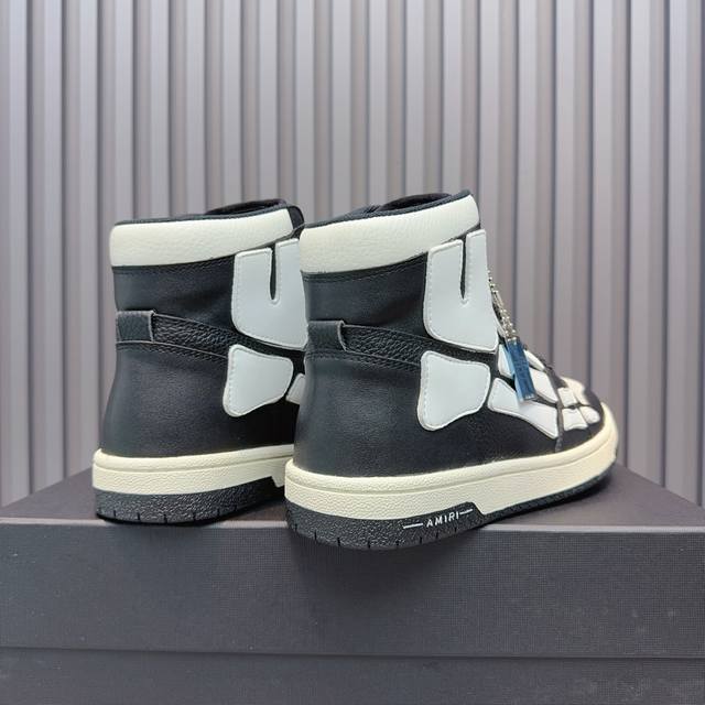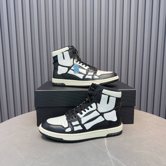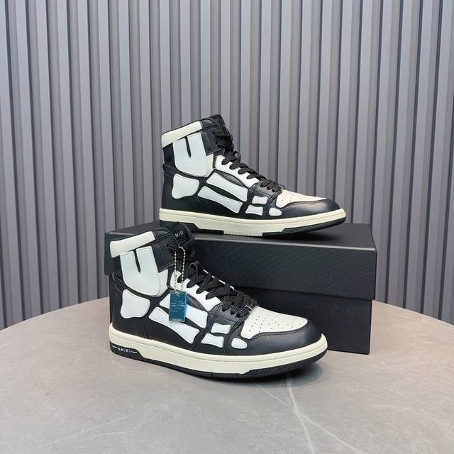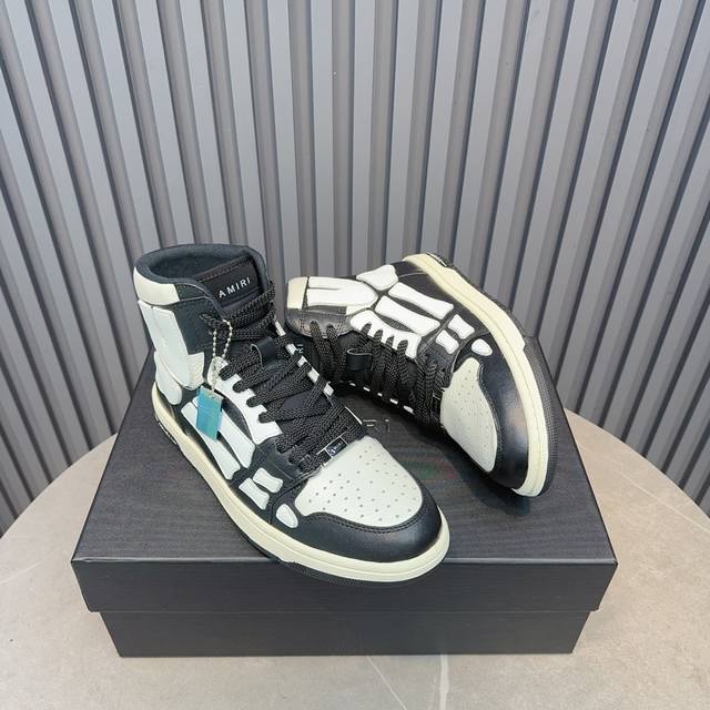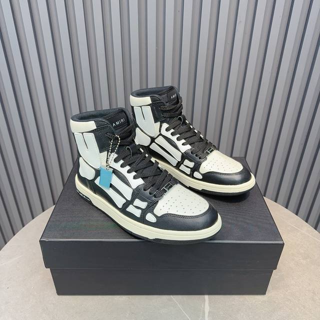 Real Price. Amiri's popular couple's bone shoes. A leader in casual fashion. Exclusive best-selling bone shoes from the Los Angeles high-street brand, worn by many celebrities and internet influencers. Popular with Chinese rapper Xiaobai Gali, Wang Yibo, Yang Mi, and other influencers. Features include a 3D skull and bone-like design on the side of the AJ1 silhouette. Material: Original custom-made top-grain cowhide, double-layer bone construction, all handmade with oiled edges. Lining: Exclusively customized Nike lining, unmatched in its class. Insole: Original molded injection-molded one-piece insole, comfortable and not tiring. Outsole: Original factory p1:1 molded three-color original outsole. Sizes: 35-46.