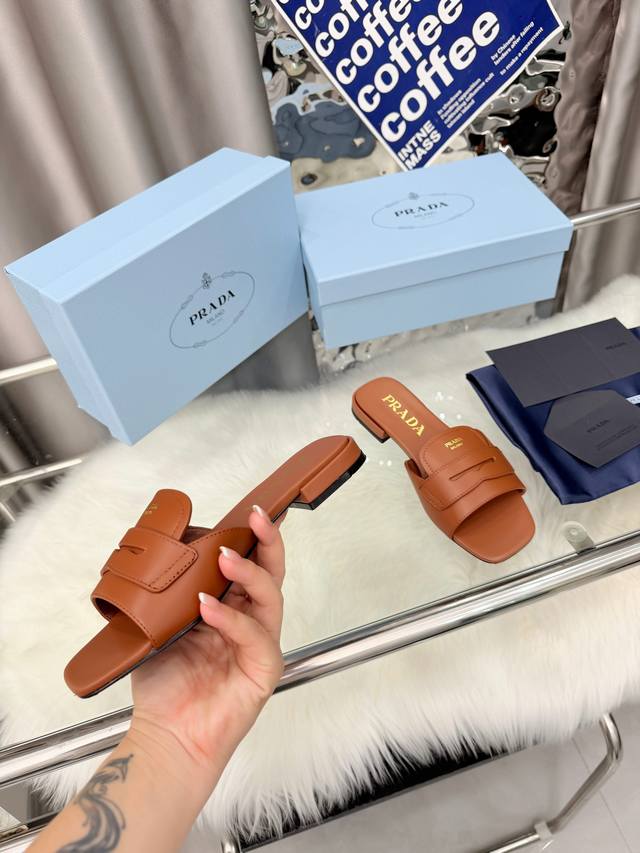 Prada 2026Ss DDD New Leather Band Slippers are here! Recommended by major bloggers on Xiaohongshu, 1:1 replica showcasing classic charm. DDD Outerwear: Calfskin, Sheepskin Lining, Italian Genuine Leather Outsole. Available in 3 colors. Sizes: 35-42, 41-42. Custom orders are non-refundable and non-exchangeable.