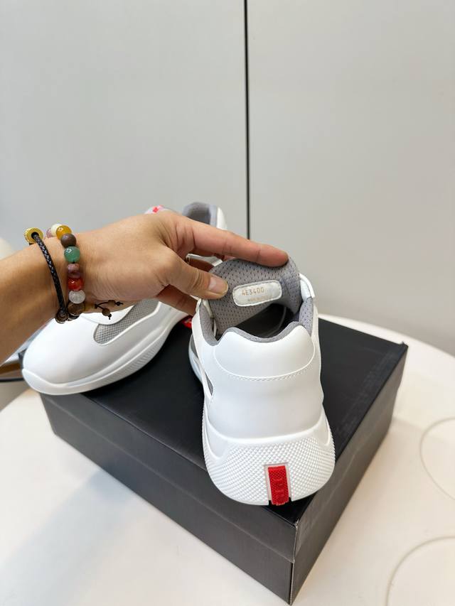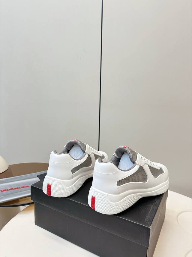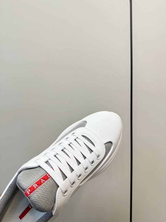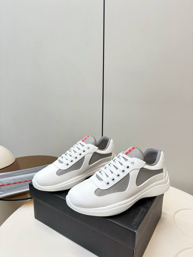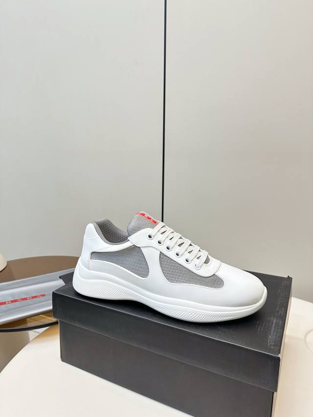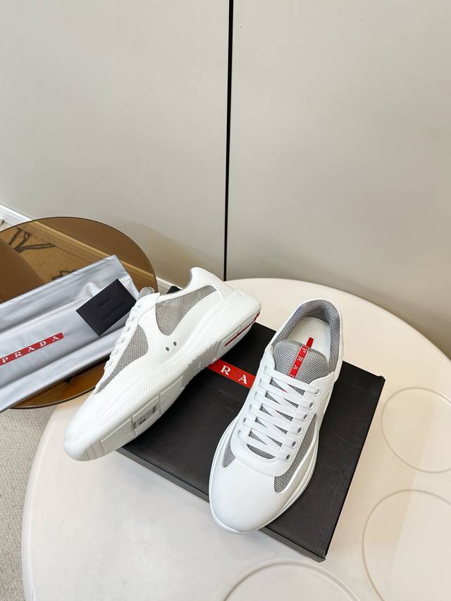 Prada America's Cup Men's Business Athletic Shoes DDD Prada America's Cup series athletic shoes, inspired by nautical sports, feature a leather and grey fabric patchwork design, simple yet layered. Ddd The sole uses soft rubber, lightweight and comfortable, suitable for everyday wear or sports. Ddd The tongue and sole feature the Prada logo, making them highly recognizable! The sole is approximately 3cm long, providing excellent cushioning, so you won't feel tired even after wearing it for a long time. The overall design combines functionality and style, making it one of Prada's classic series, perfect for those who like high-end athletic shoes. Ddd Sizes: 38-45 45. Custom orders available DDD
