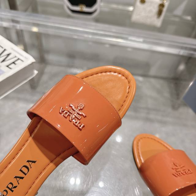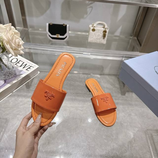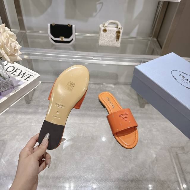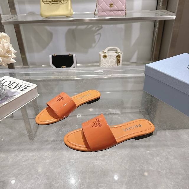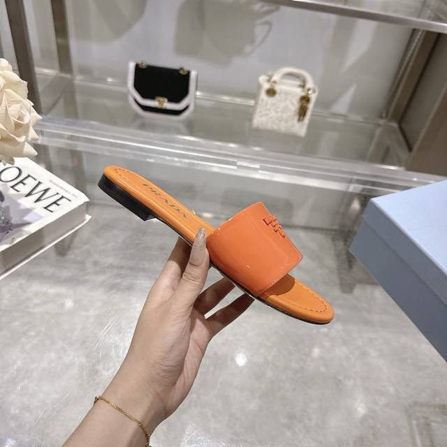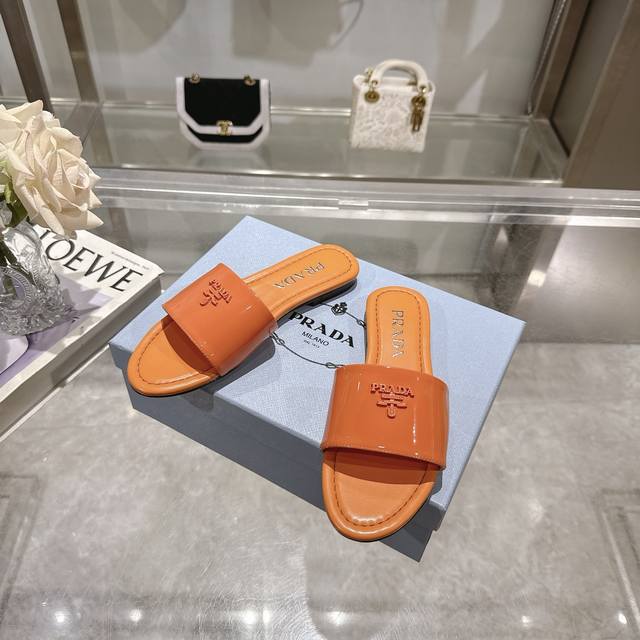 2025 Prada's latest hot-selling slippers. Factory direct price. Made with top-quality patent leather and a high-performance genuine leather sole, these slippers are a summer essential that requires minimal care. Sizes 35-40M (standard sizes). Available in 6 colors. Comes with standard packaging.