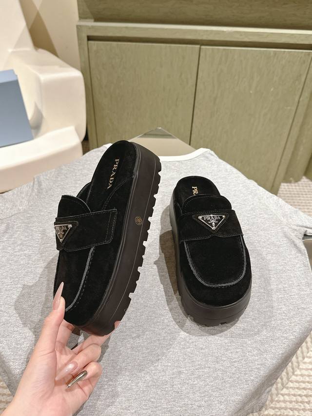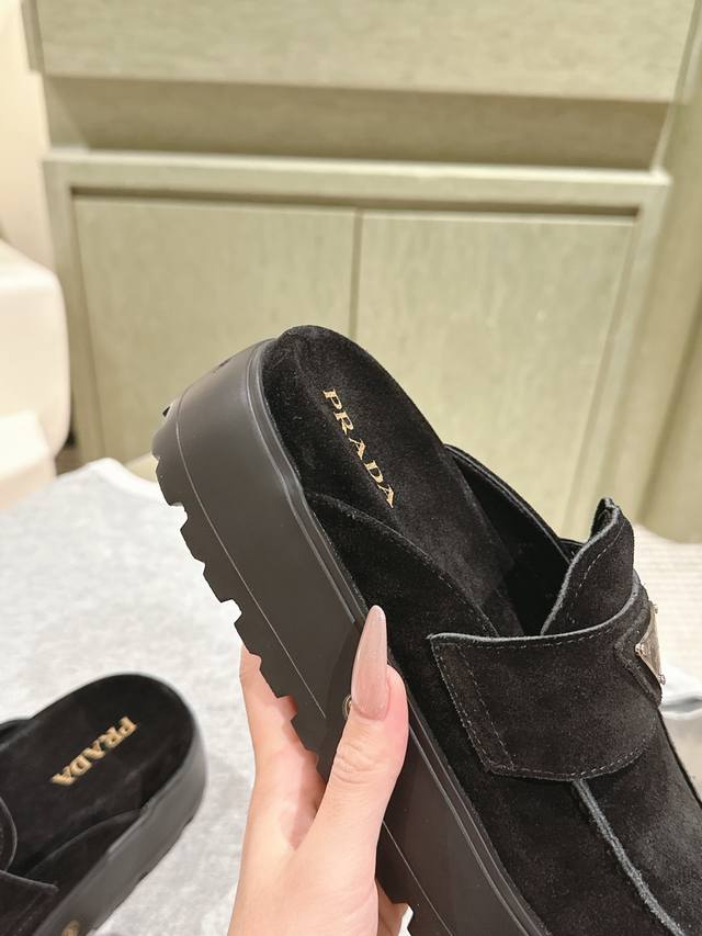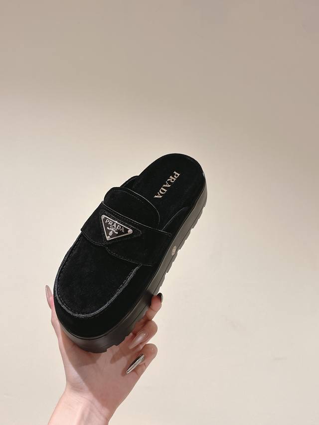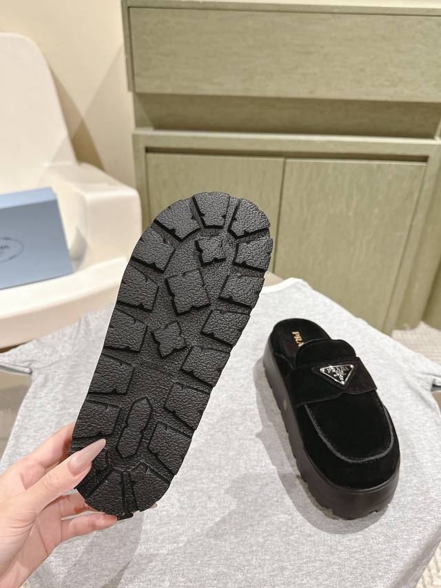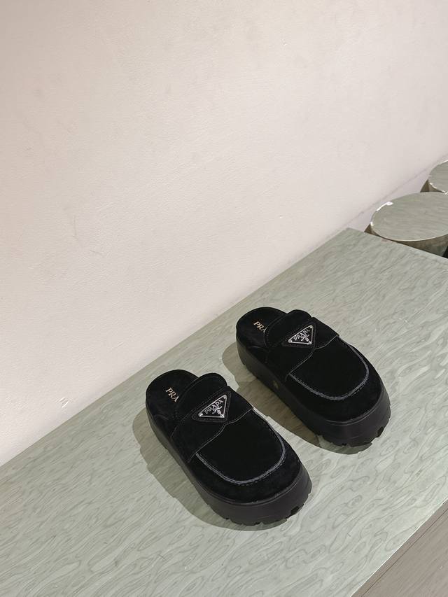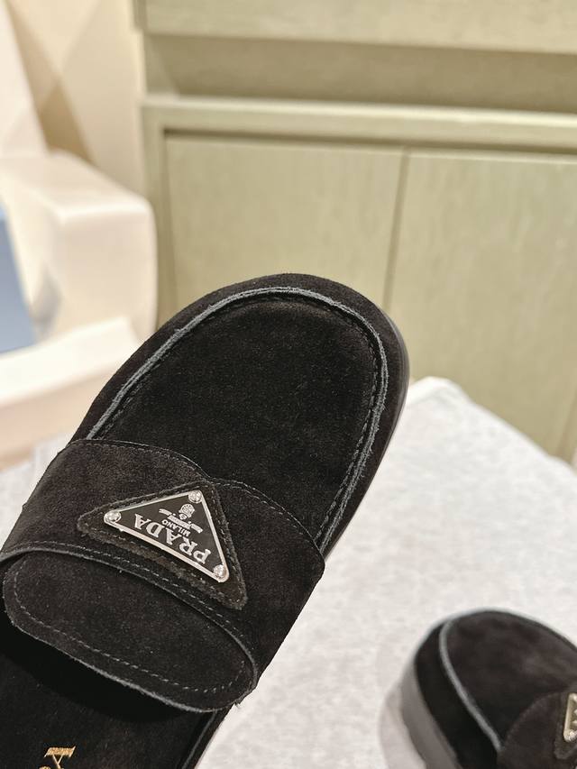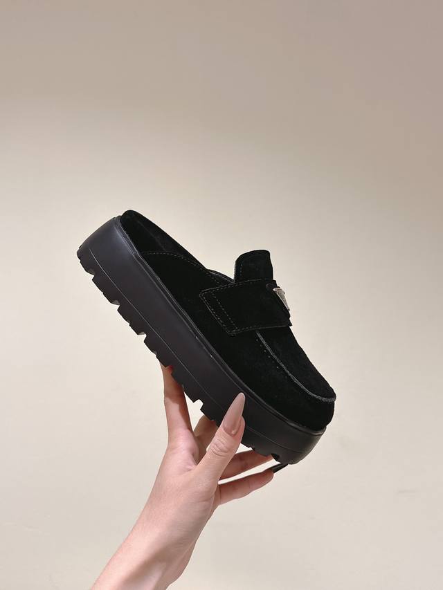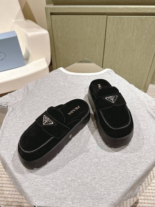 A new Prada slip-on with thick sole. This cowhide sole is very comfortable and has been a hot item this year. It's both a height-enhancing and casual look. The refreshing design demonstrates the meticulous attention to detail.
