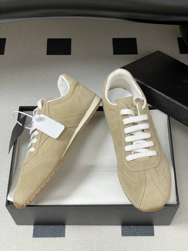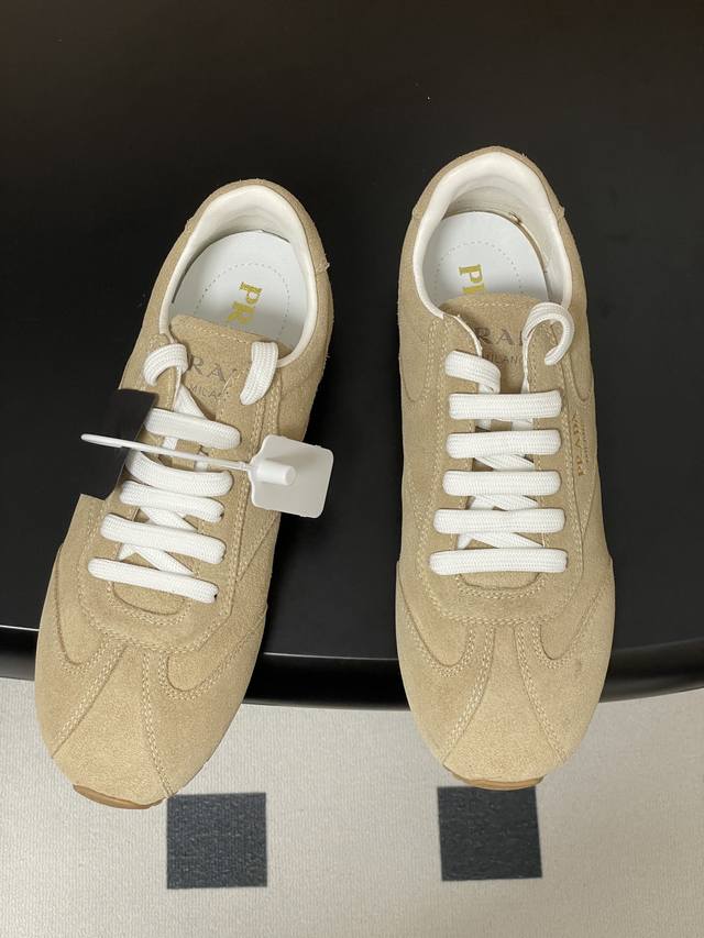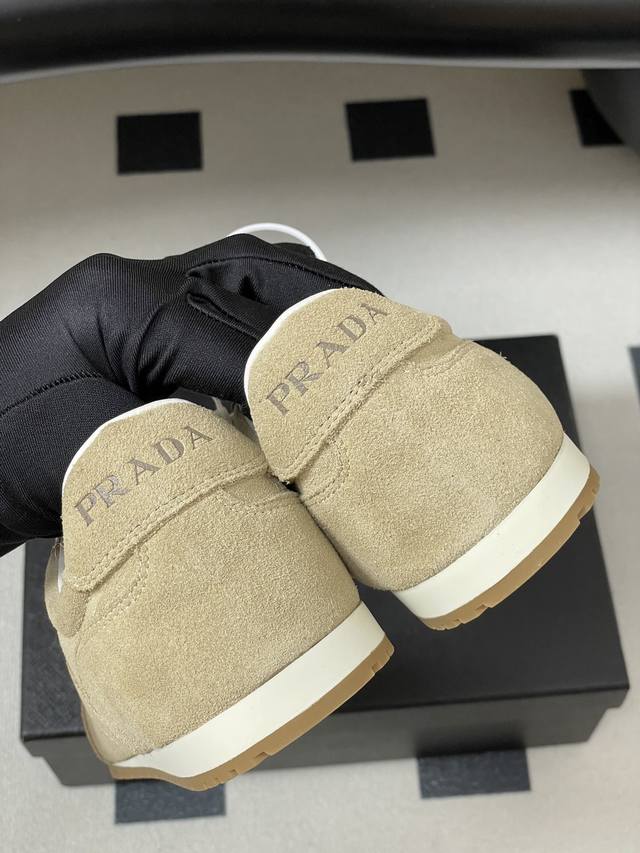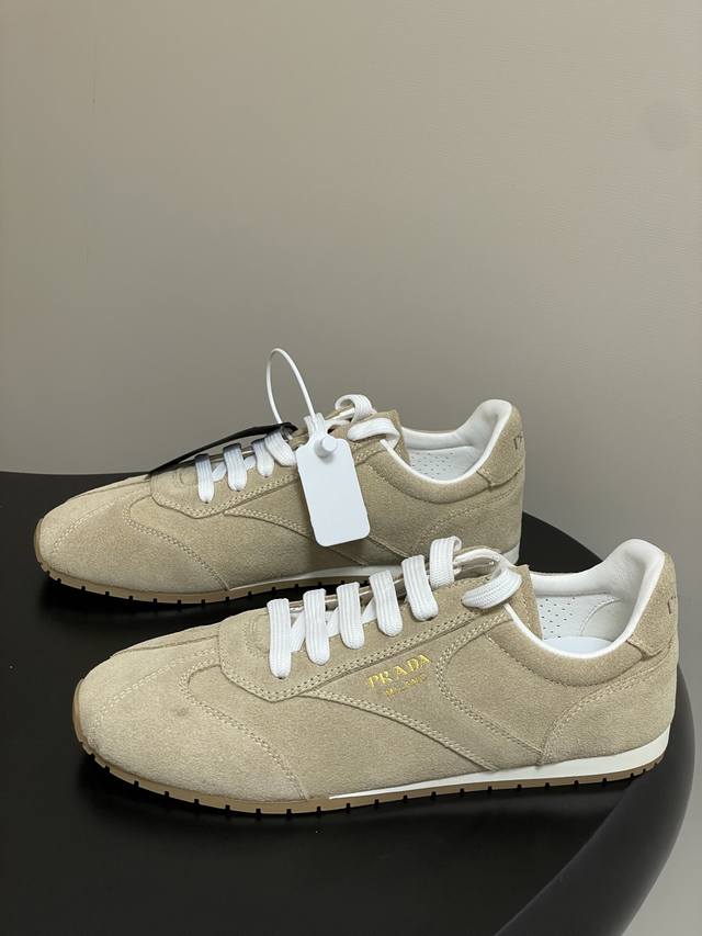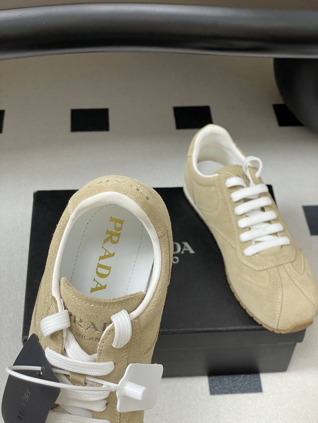 25Fw New Prada suede cowhide sneakers for early autumn, retro German training shoes, lace-up casual sneakers