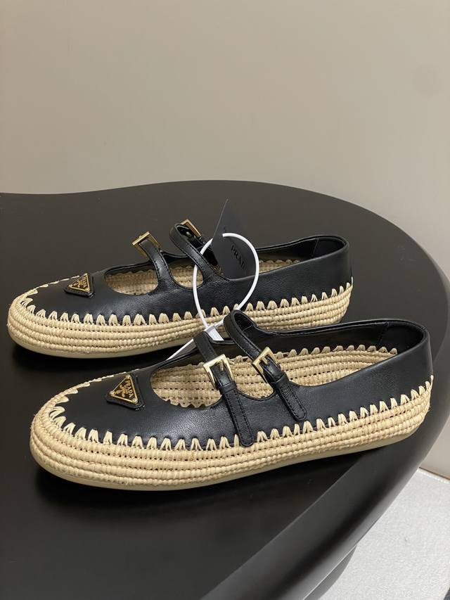 25Fw Spring/Summer New Prada Exquisite Raffia Mary Jane Shoes with Triangle Logo Retro Straw Ballet Flats Ddd Purely hand-woven with the iconic triangle logo, exquisite yet modern. The double-strap design adds a retro charm. The straw sole incorporates a casual texture. The slip-on style is convenient and fashionable, easily capturing Italian elegance. It's an indispensable piece in any fashion wardrobe Ddd Elegant ballet flats present exquisite weaving and elegant details Ddd Highlighting the innovative combination of soft leather and the unique texture of raffia Ddd Upper: Cowhide, suede, sheepskin, imported environmentally friendly raffia Ddd Insole: Lambskin Ddd Outsole: Original rubber non-slip outsole Ddd Sizes: 35-39 40.41 Custom-made, no returns or exchanges DDD