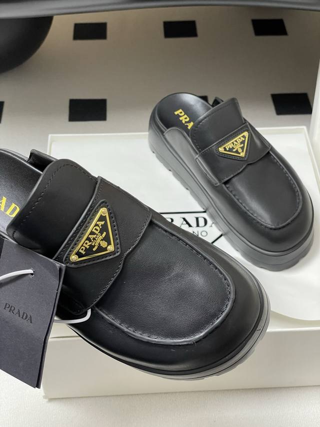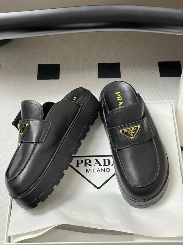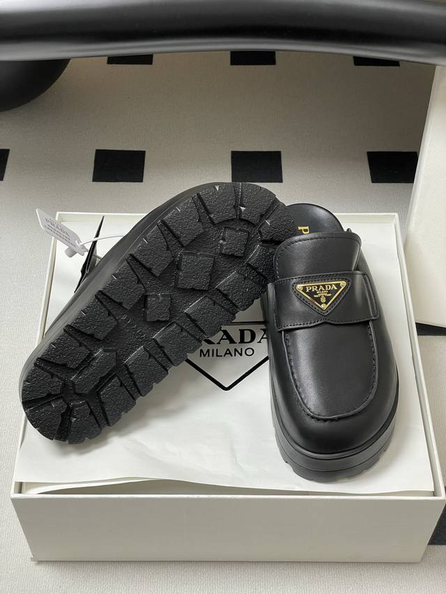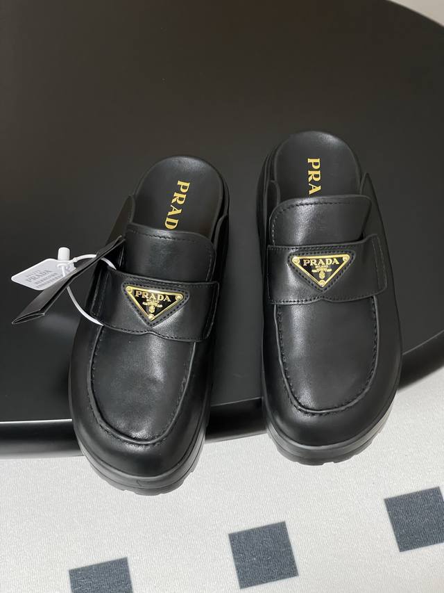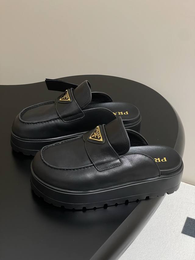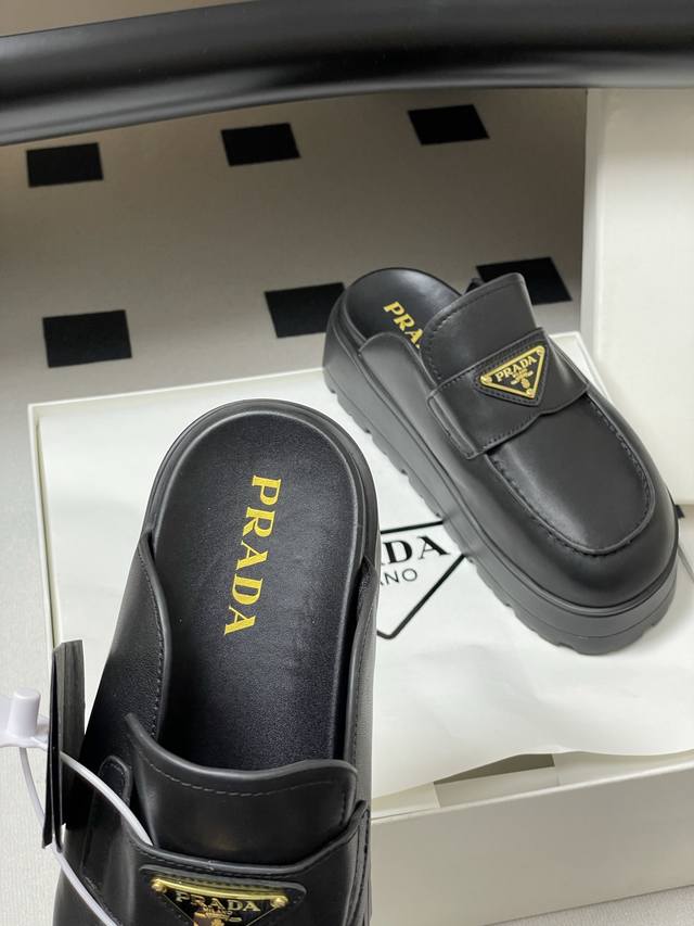 25Ss New early spring Prada triangle logo slip-on thick-soled Birkenstock closed-toe half-slip mules
