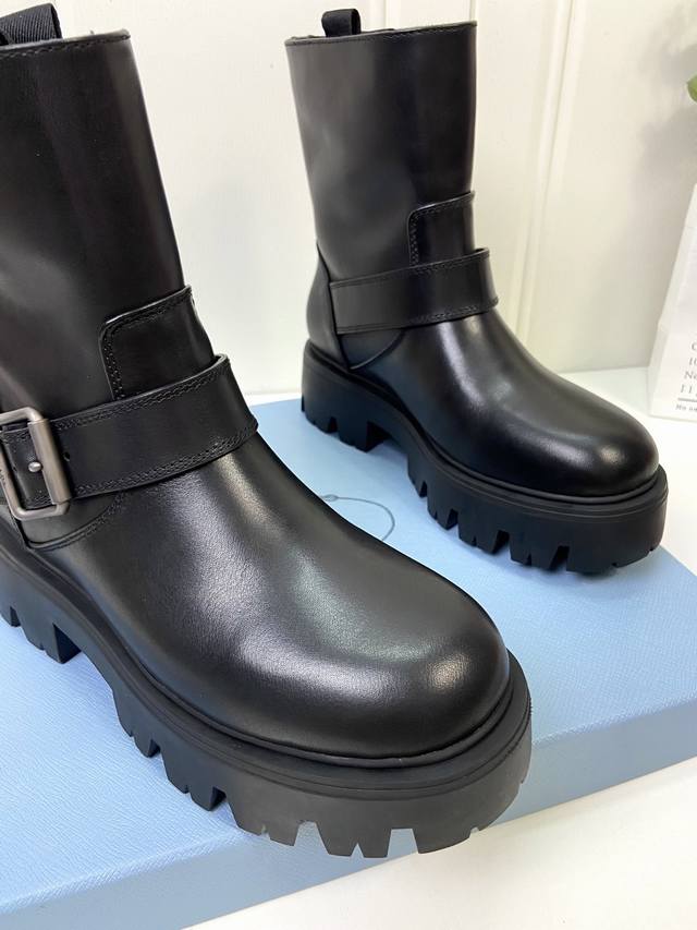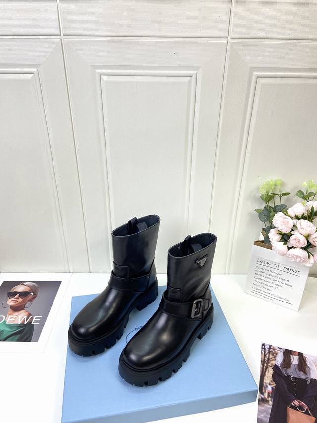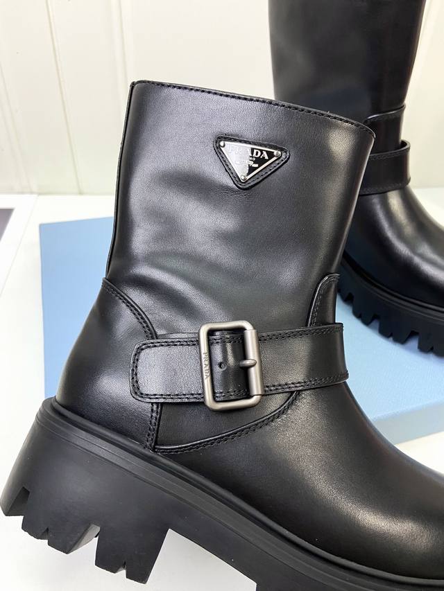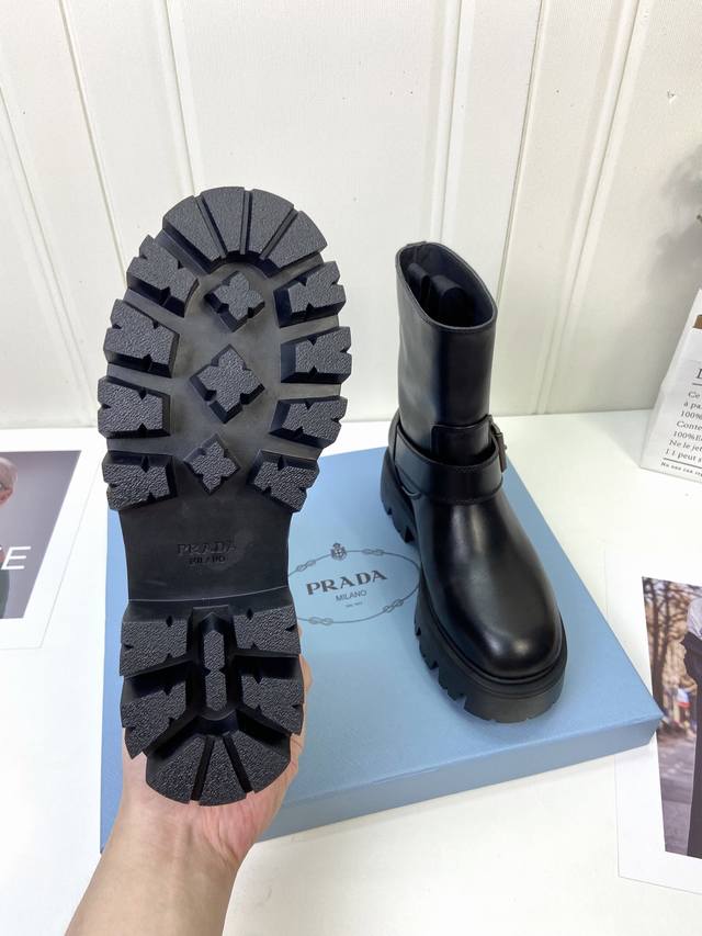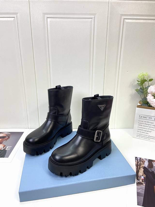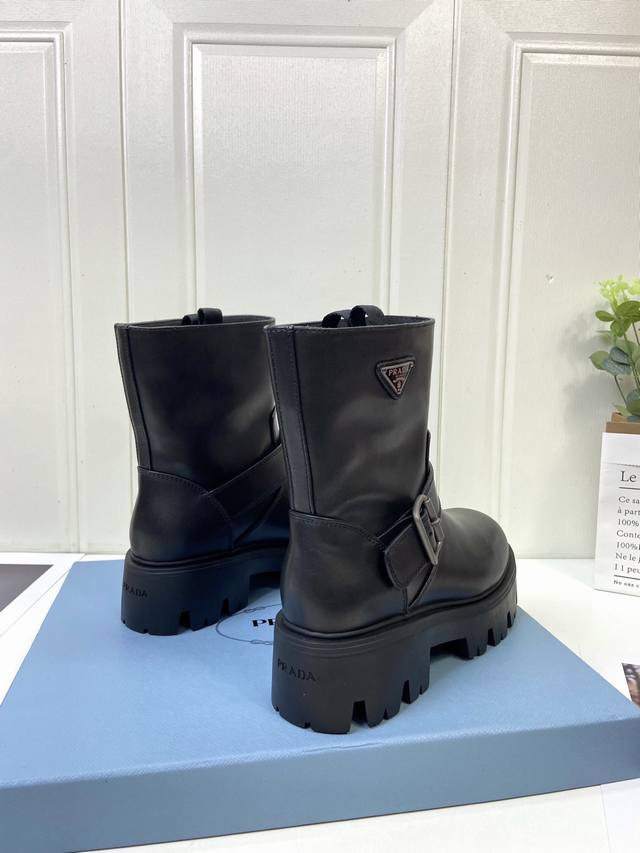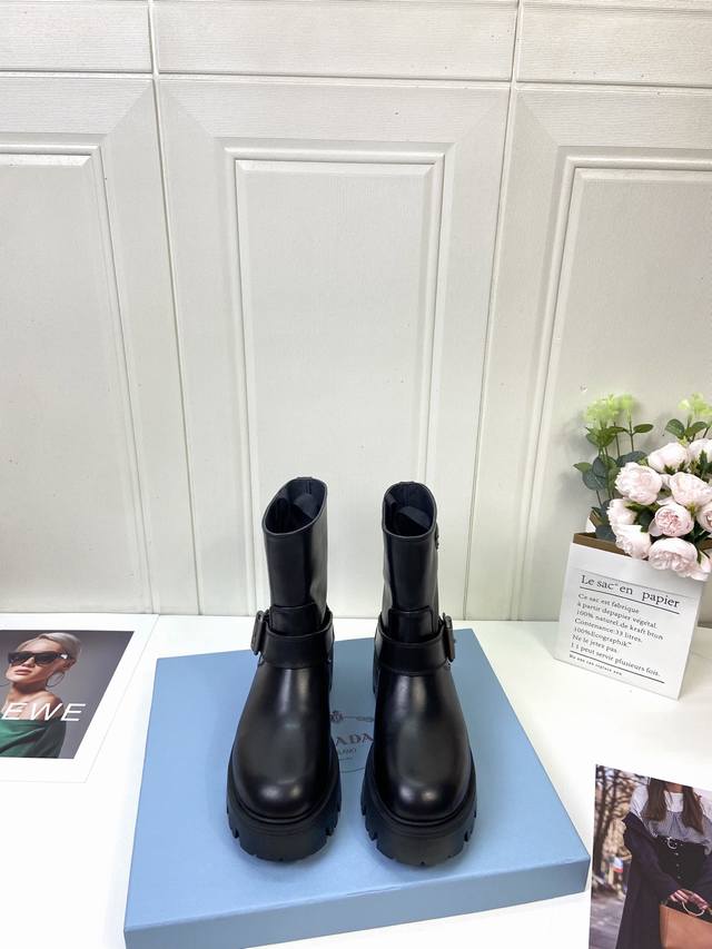 Calfskin Prada Classic Triangle Logo Slip-on Women's Ankle Boots DDD A must-have for winter, this is definitely a hot item this year!! Super stylish! Prada boots are truly amazing! They look sophisticated and make your legs look slimmer, perfectly capturing the essence of elegance DDD The entire series uses various imported materials: waxed calfskin, high-gloss suede, and a lightweight and comfortable water-dyed cowhide lining with a foam sole! DDD Size: 35-41 40 41 Custom orders are non-refundable DDD