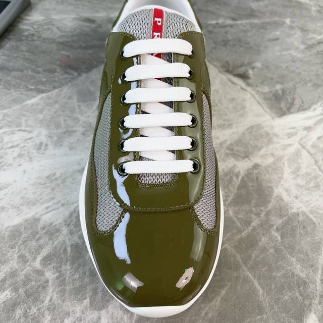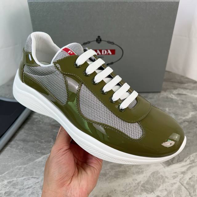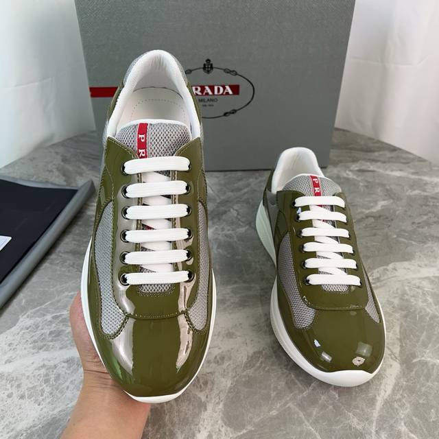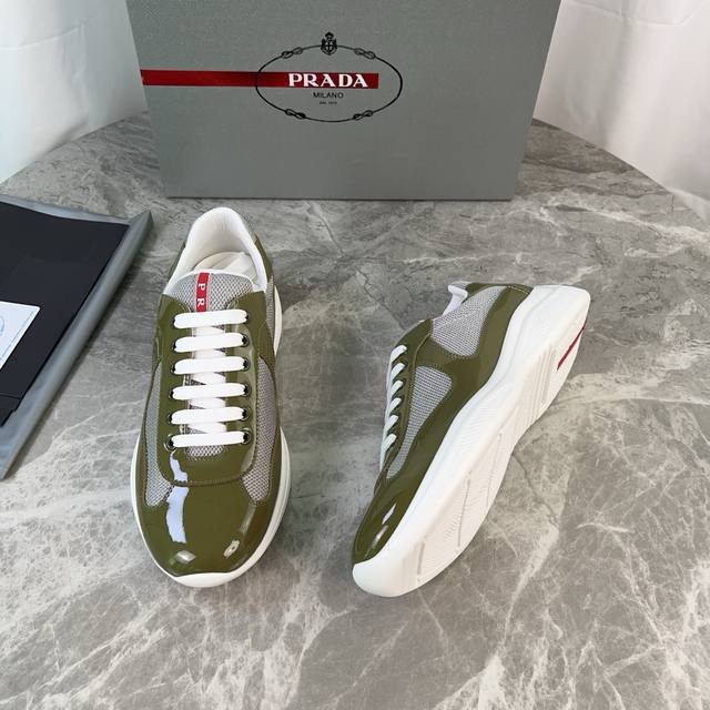 Classic P brand design. Outer layer: Top-grain cowhide patent leather + brand mesh fabric. Inner layer: Imported Bk mesh fabric. Pad: Perforated breathable cowhide feet. Sole: Original molded patterned non-slip rubber sole. Original packaging. Size: 35-45.