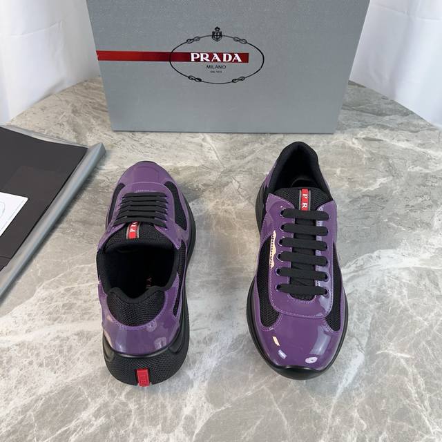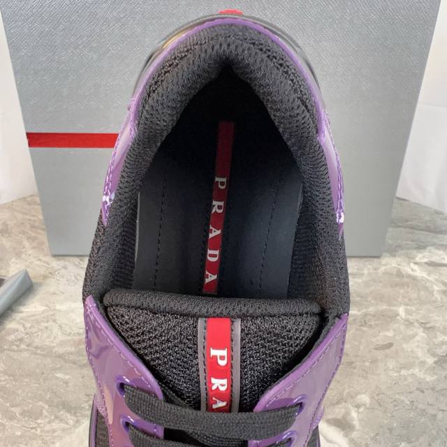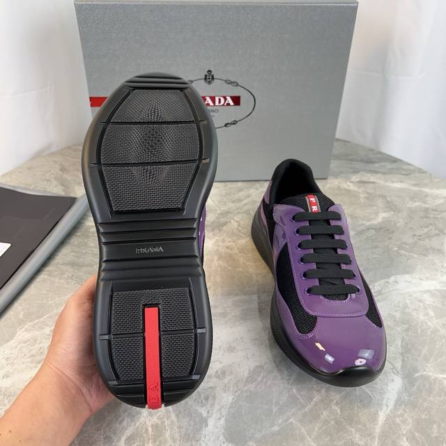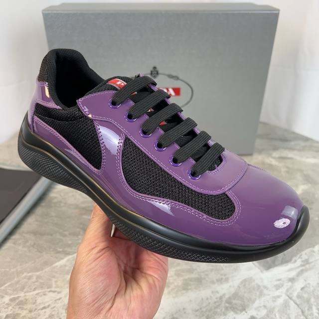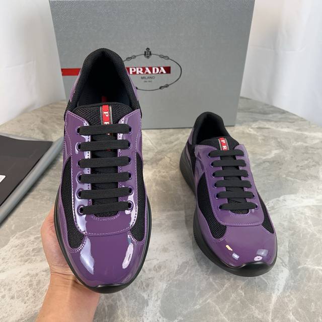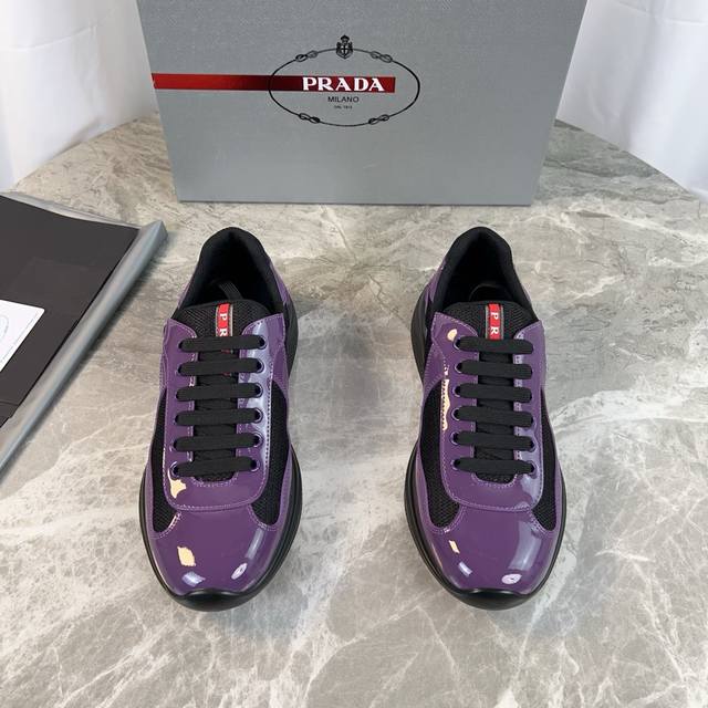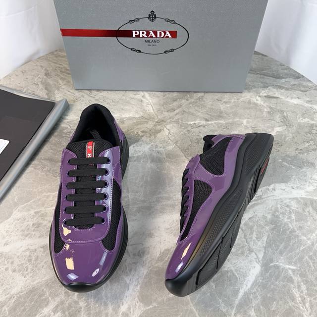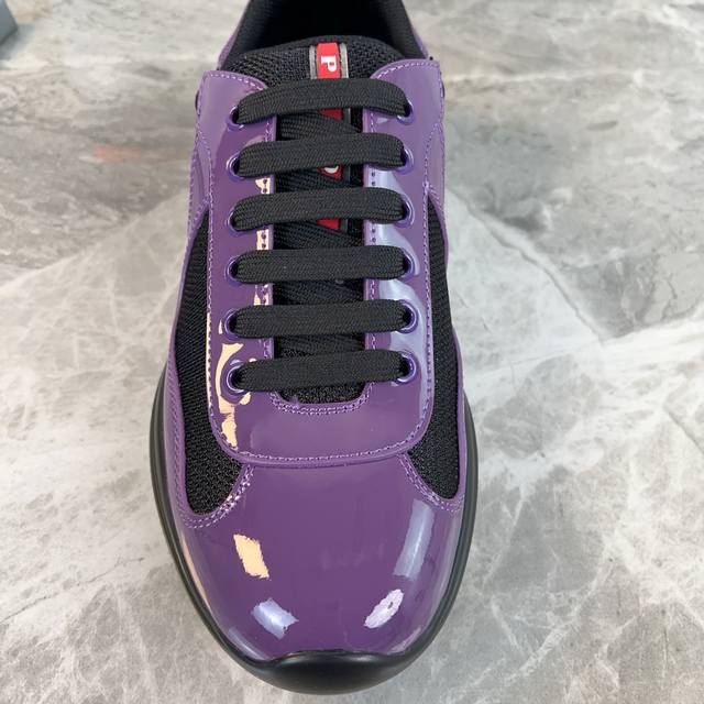 Classic P-brand design. Outer layer: Top-grain patent leather + brand mesh fabri