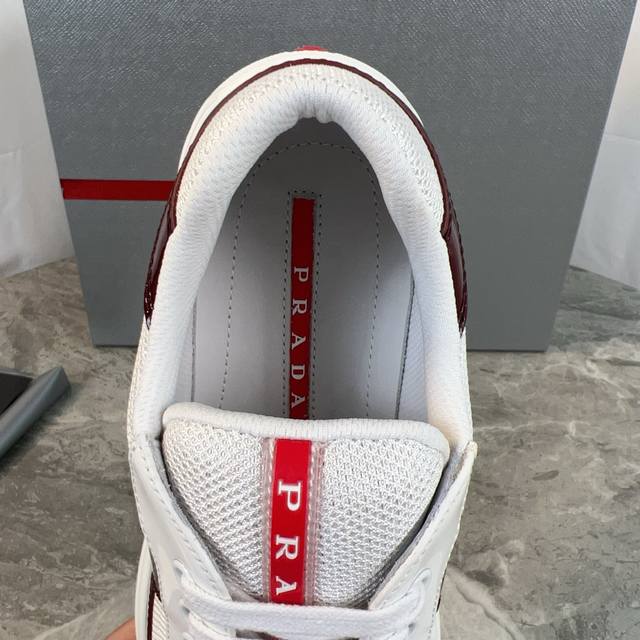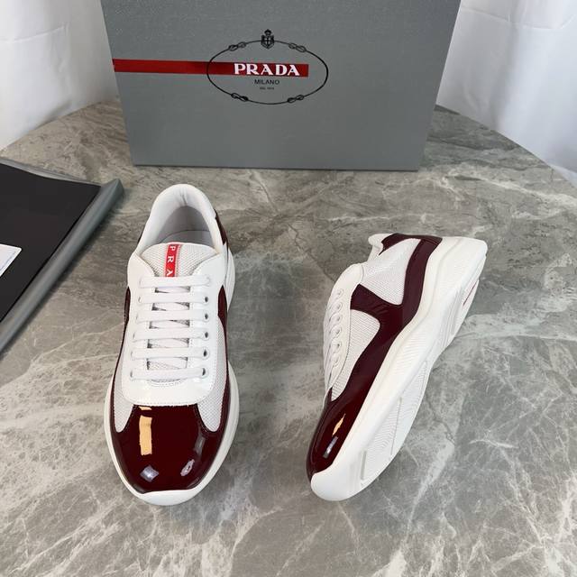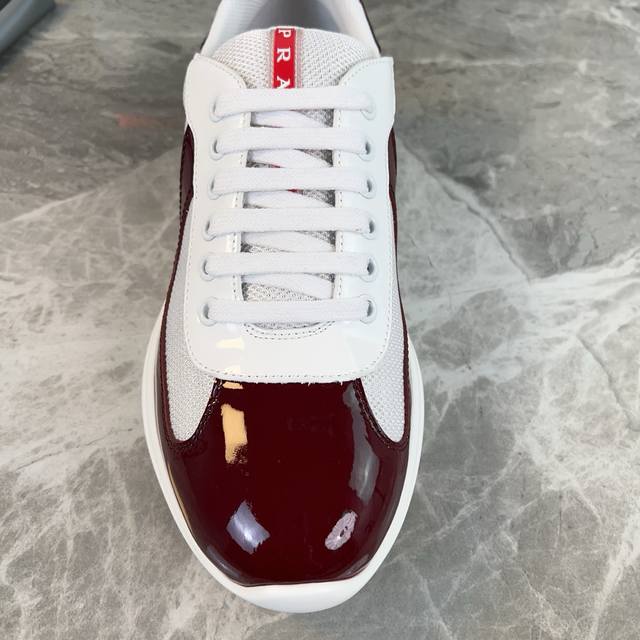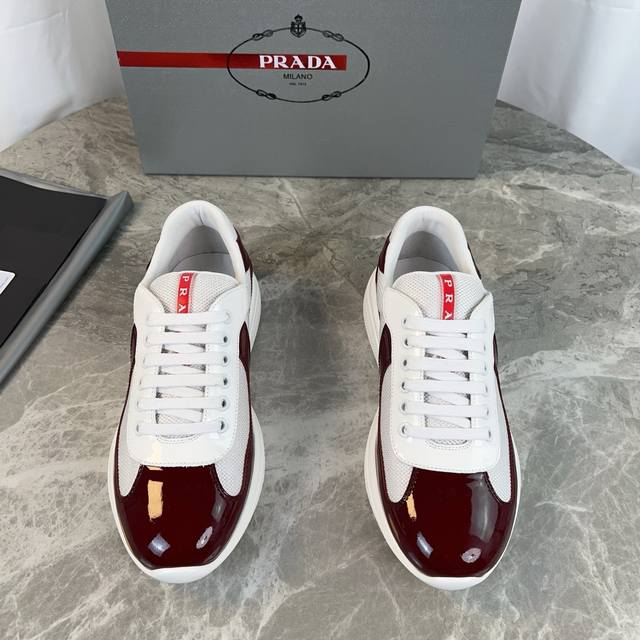 Classic P-brand design. Outer layer: Top-grain patent leather + brand mesh fabri