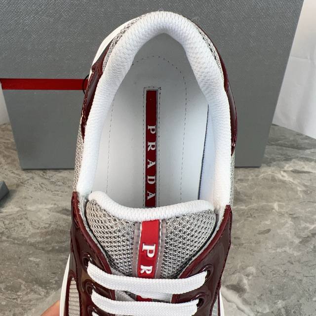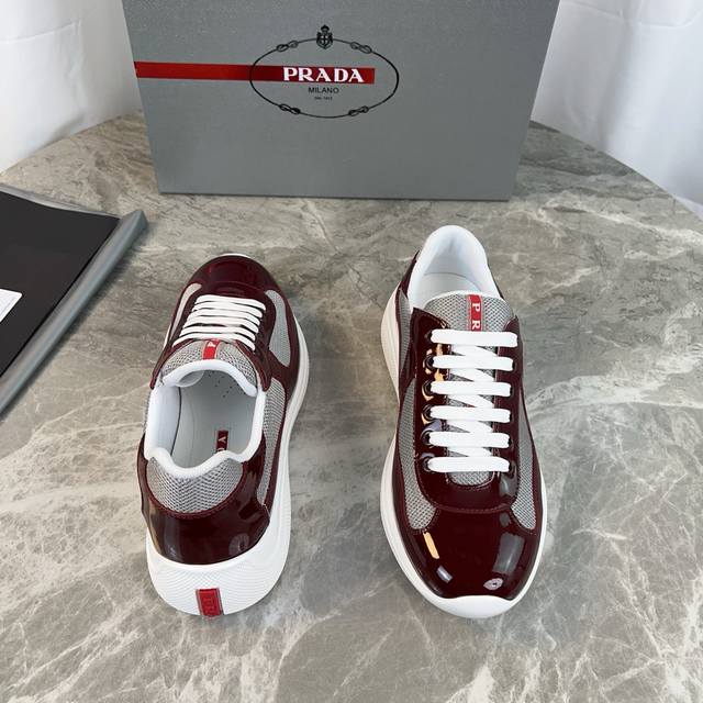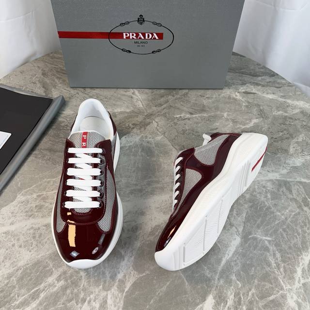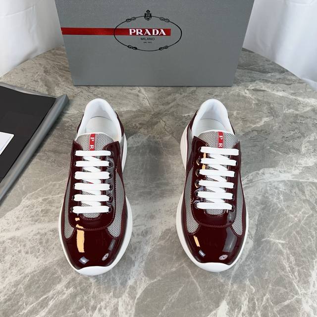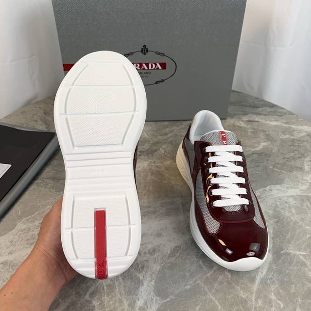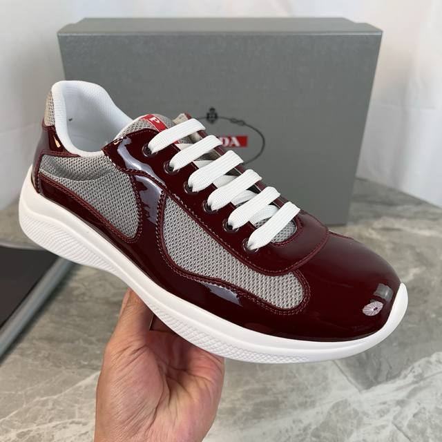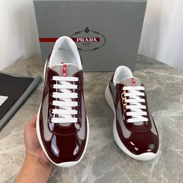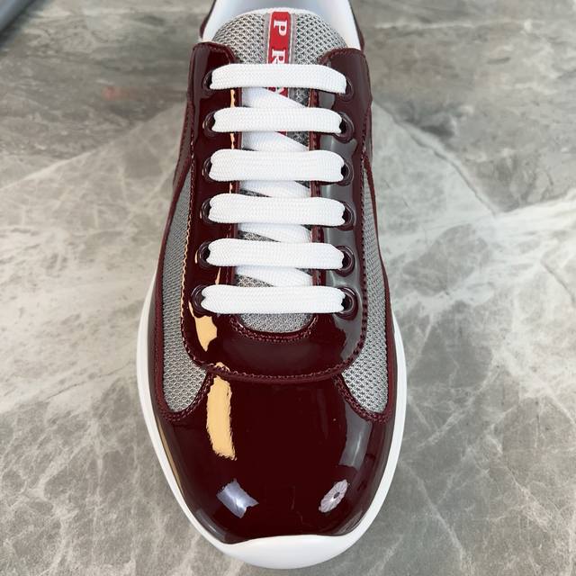 Classic P-brand design. Outer layer: Top-grain patent leather + brand mesh fabri