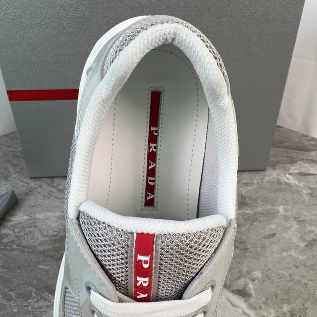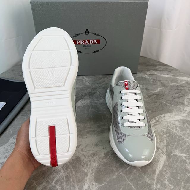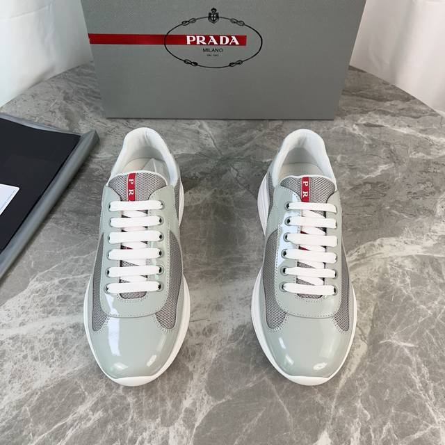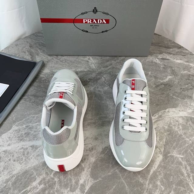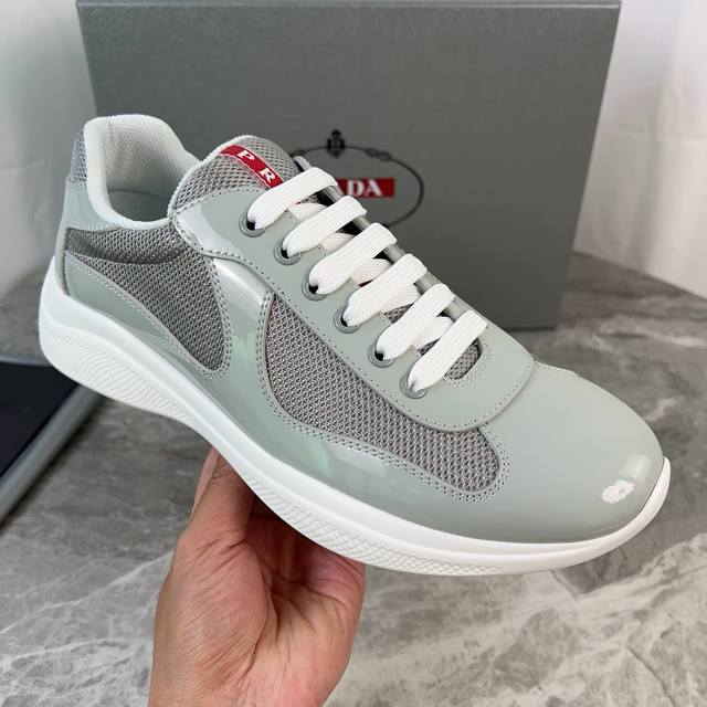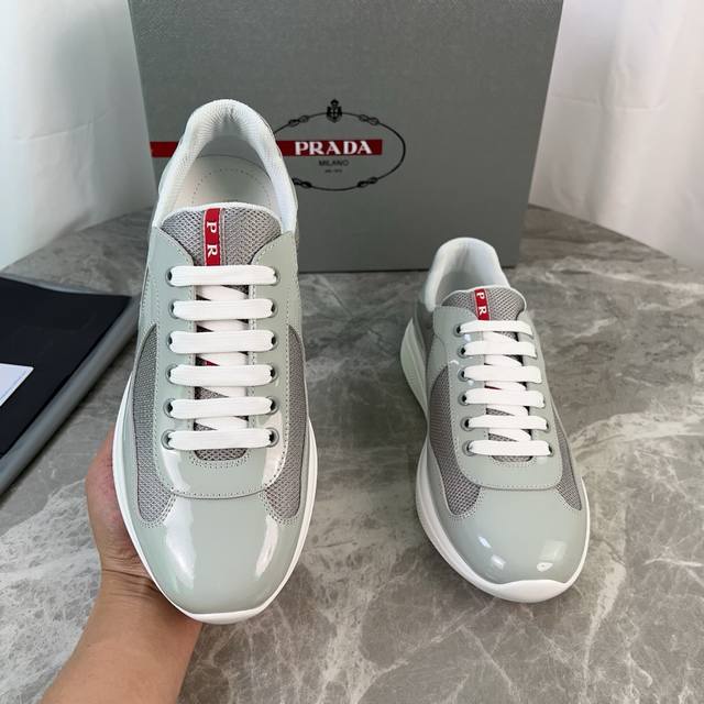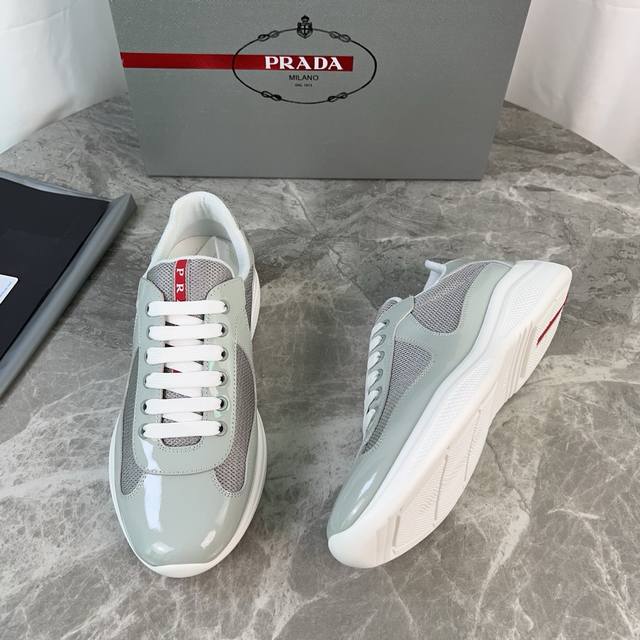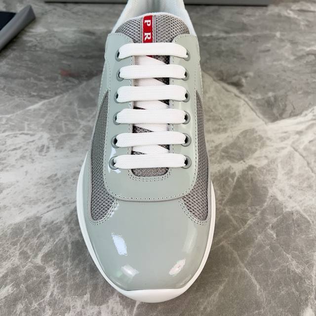 Classic P-brand design. Outer layer: Top-grain patent leather + brand mesh fabri