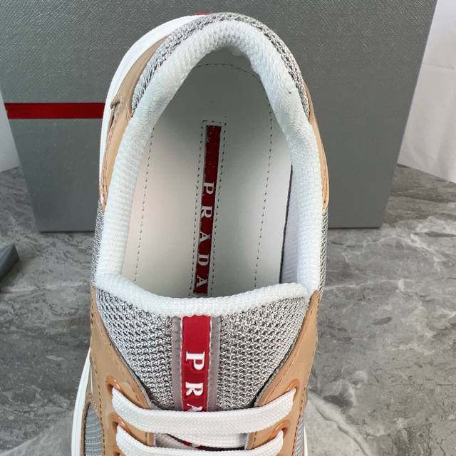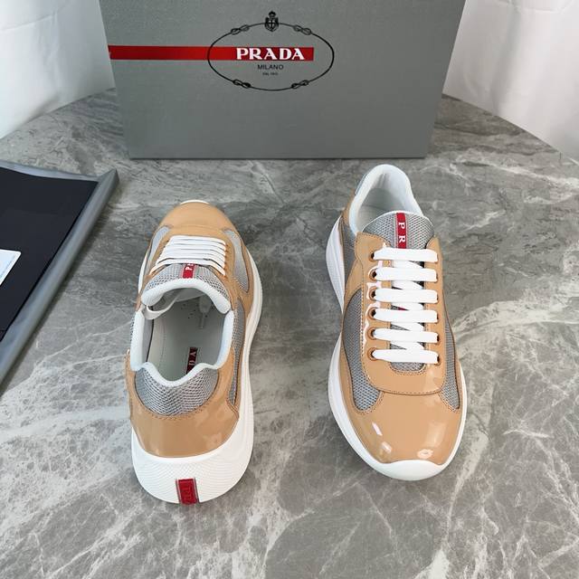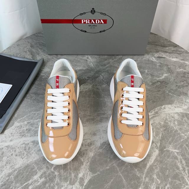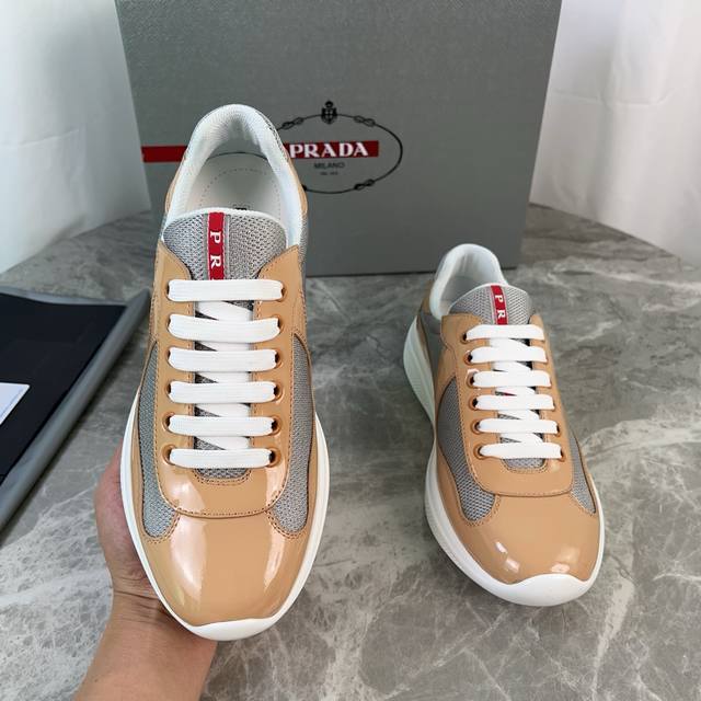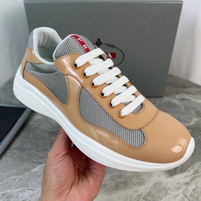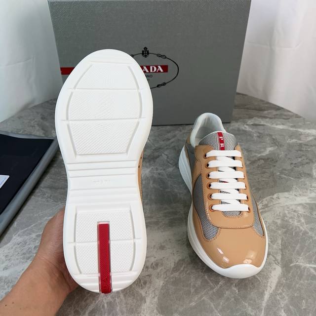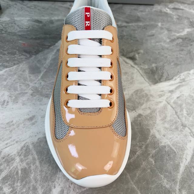 Classic P-brand design. Outer layer: Top-grain patent leather + brand mesh fabri