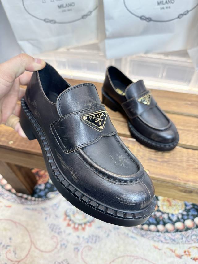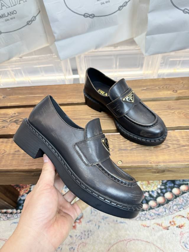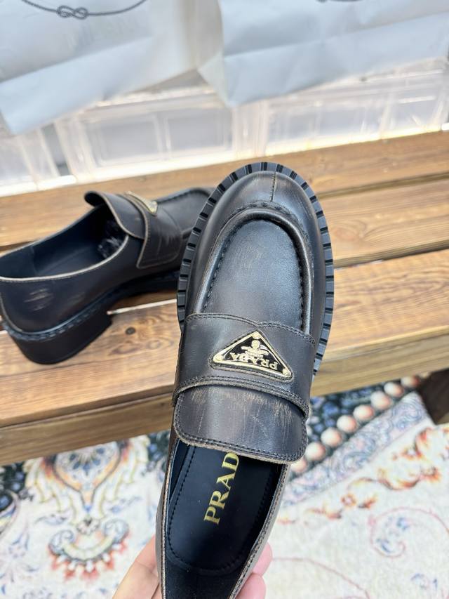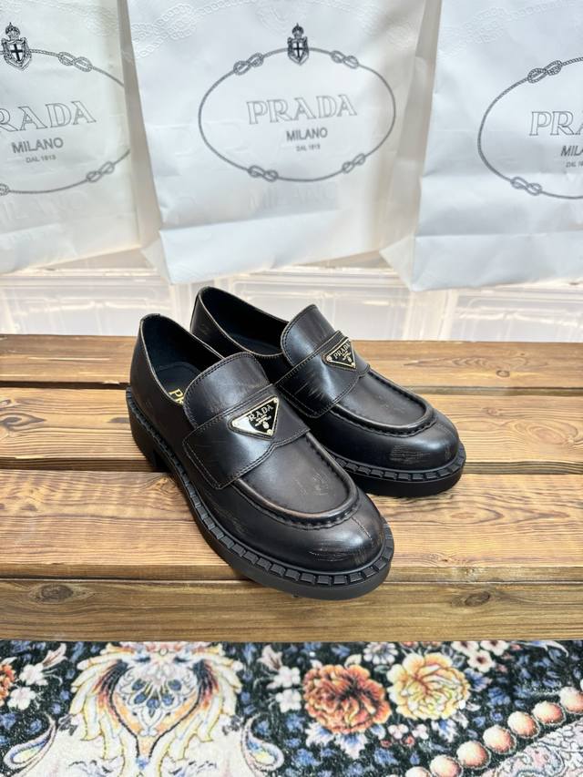 Dongguan original quality Prada 2026 Spring/Summer new arrival, boutique new color scheme, material: distressed cowhide, cowhide lining, size 34-42. Sizes 34, 40, 41, and 42 are custom-made and non-refundable/non-exchangeable.