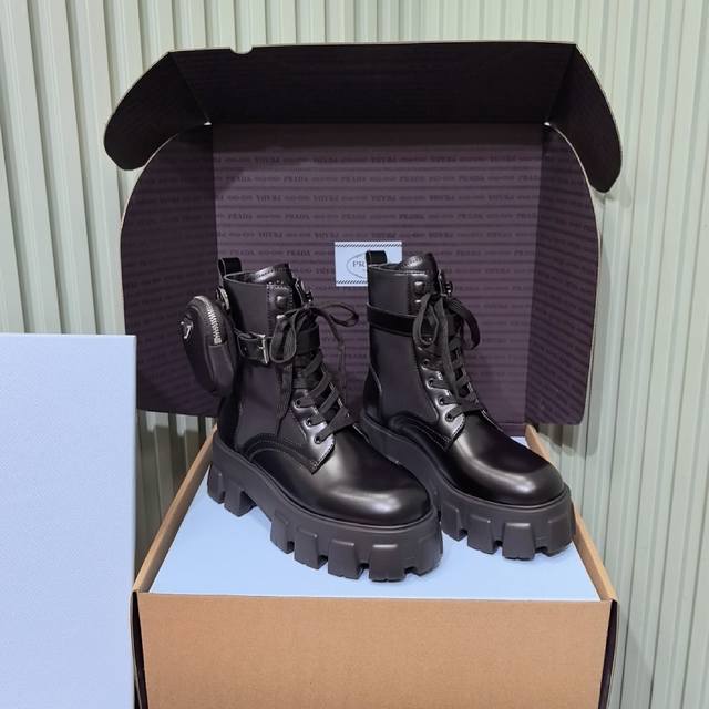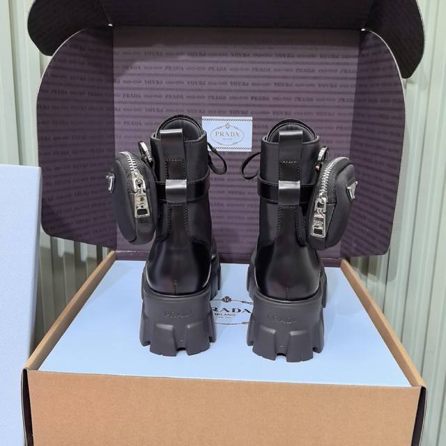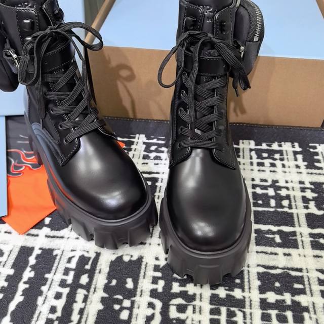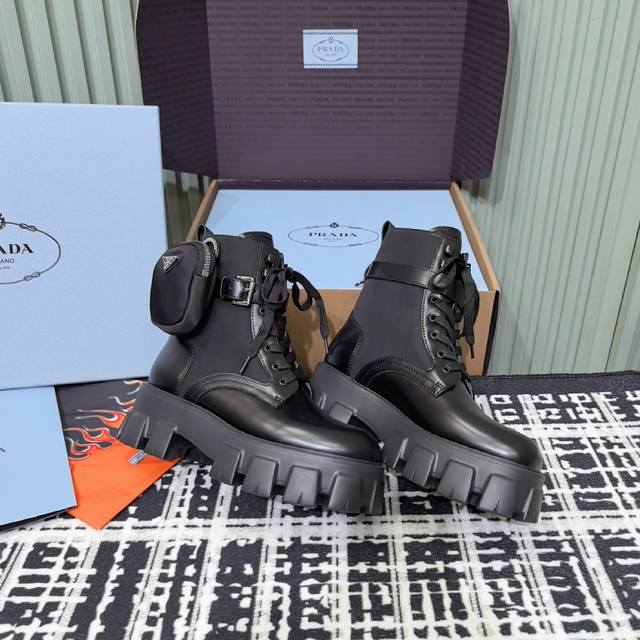 Prada's hottest selling bags and boots on the entire network are here! The evergreen style is a versatile way to wear it with socks, suitable for formal or casual, artistic and fashionable, and retro! It looks longer on the feet, a must-have. The catwalk style! The same style as celebrities and influencers, pr*A high-end customization! Original 1:1 mold material: imported matte open edge beads with waterproof nylon fabric, full cowhide lining