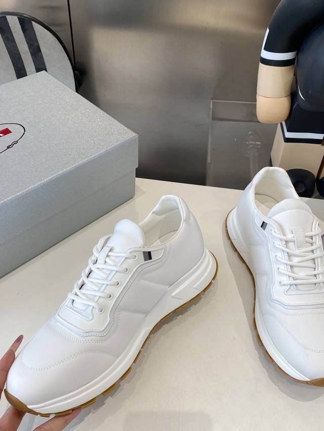 Factory direct, 1:1 replica Prada men's shoes, best-selling style, same as official website, comfortable and versatile. Material: Original imported waterproof fabric. Lining: Cowhide. Sole: Original molded outsole. Size: Men's 38-45, 45, 46. Custom orders, no returns or exchanges.