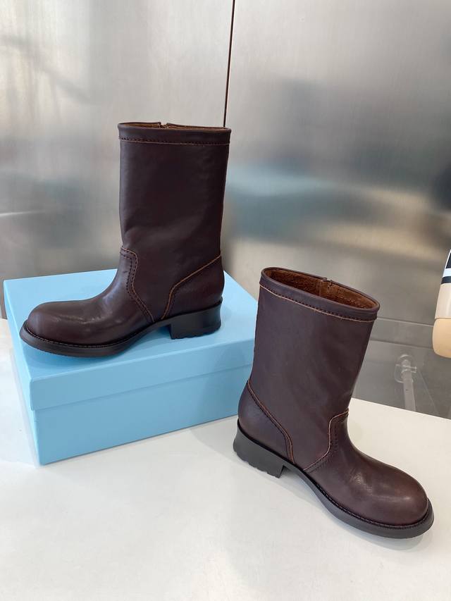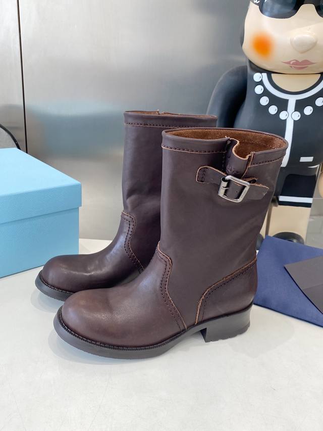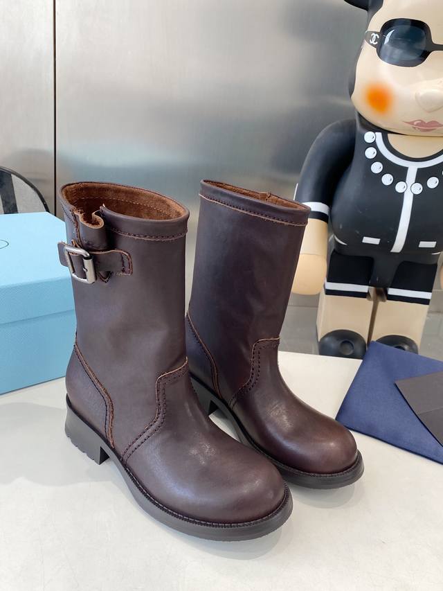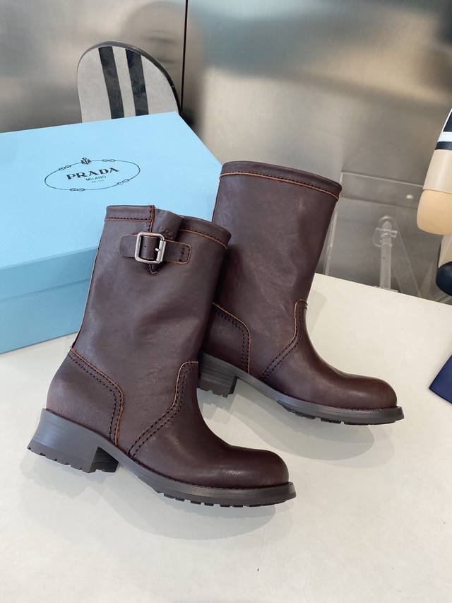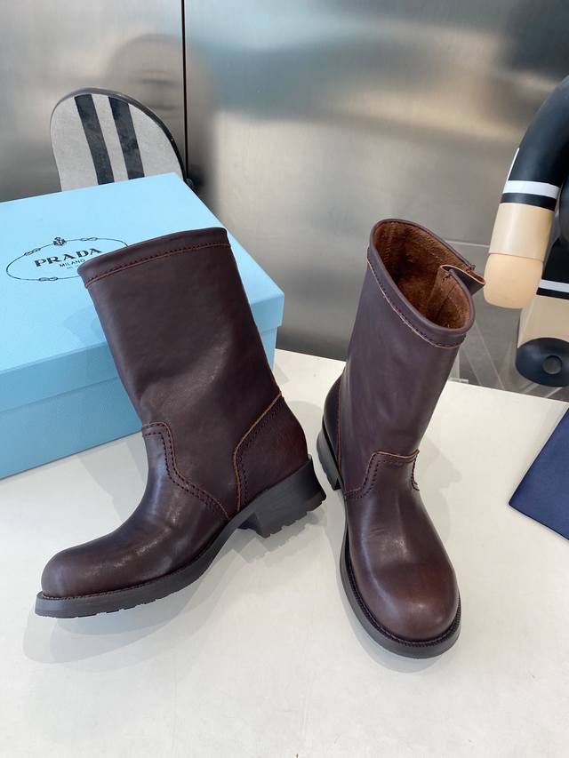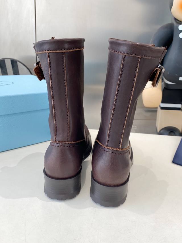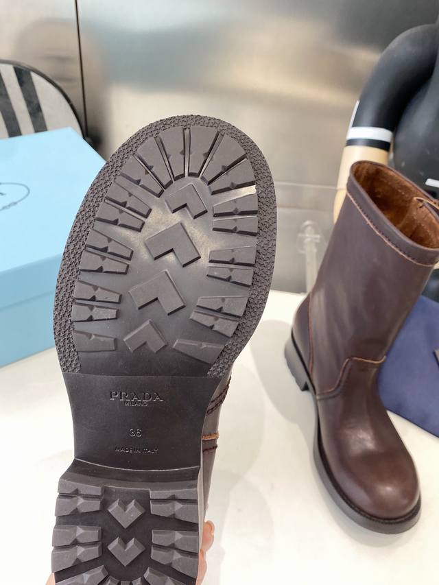 Factory Price P Prada's Latest Autumn/Winter Ankle Boots Upper: Imported calfski