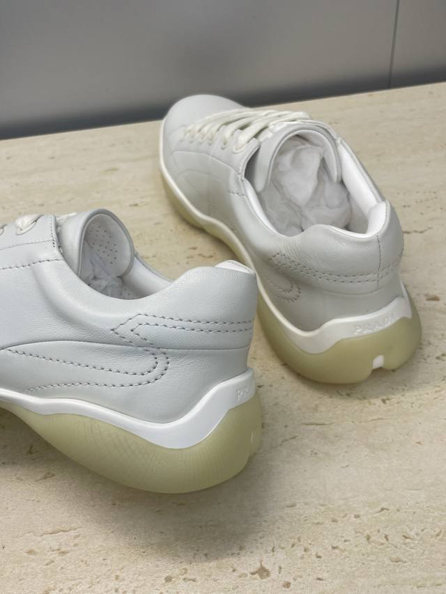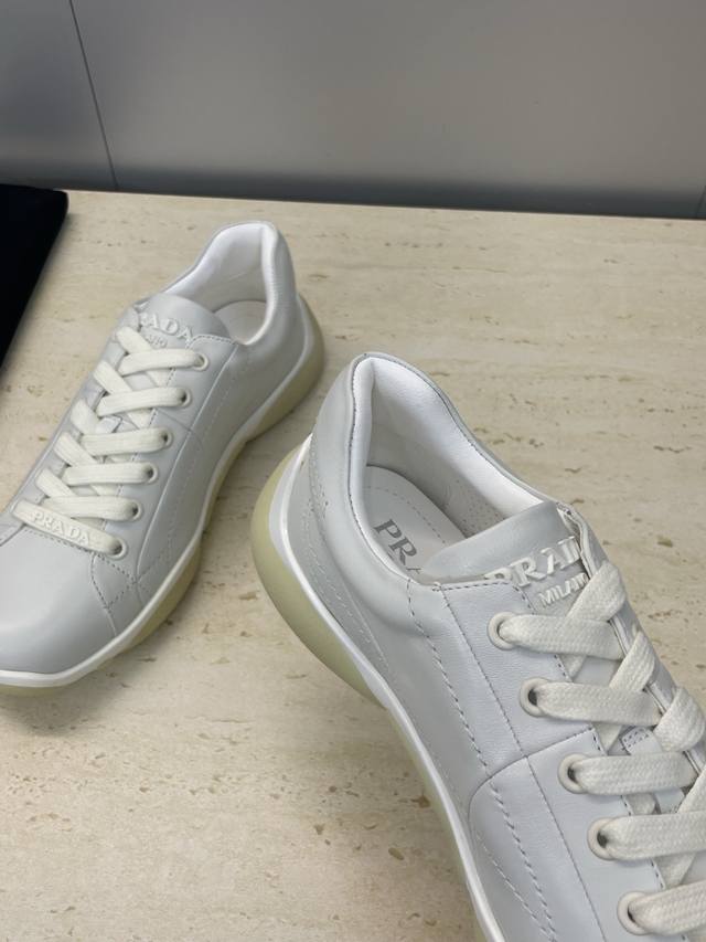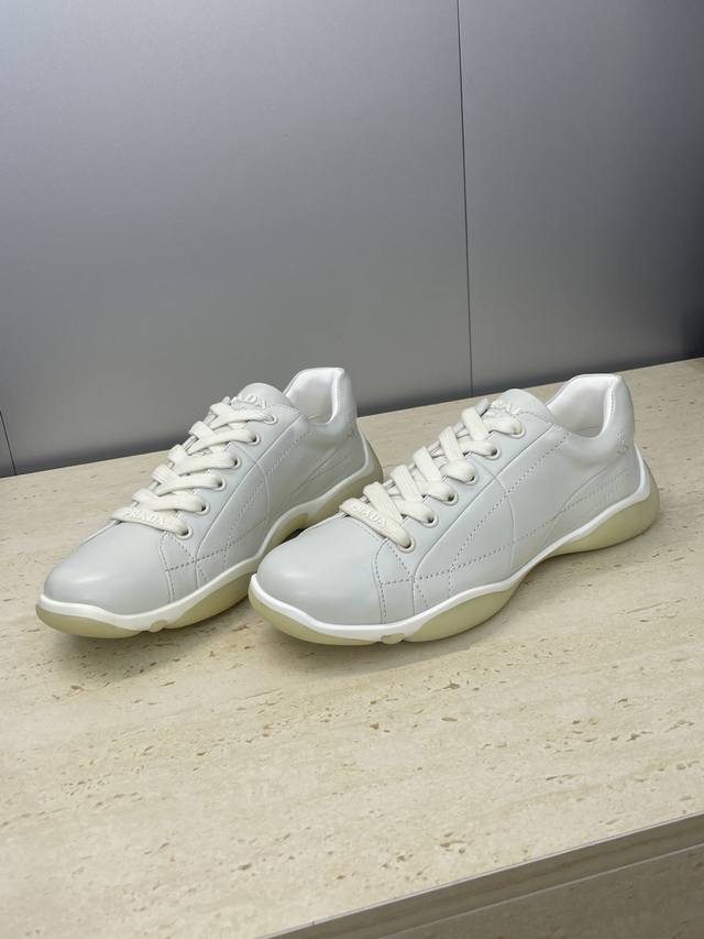 Factory direct price DDD Dongguan import-grade Prada 2025 Autumn/Winter new casual lace-up sports women's running shoes with Prada logo, flat round toe, color-blocked skateboard white shoes DDD Material: Imported calfskin upper + water-dyed cowhide lining + original mold Oxford sole DDD Size: 35-40 40 custom sizes are non-refundable DDD