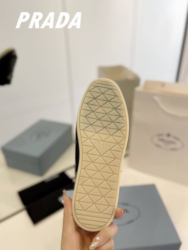 Factory direct price for men's size 20. Top-tier Prada couple's style loafers/slip-on shoes. Understated luxury slip-on shoes, the perfect choice for the wealthy! Soft rubber sole, known for its cloud-like feel
