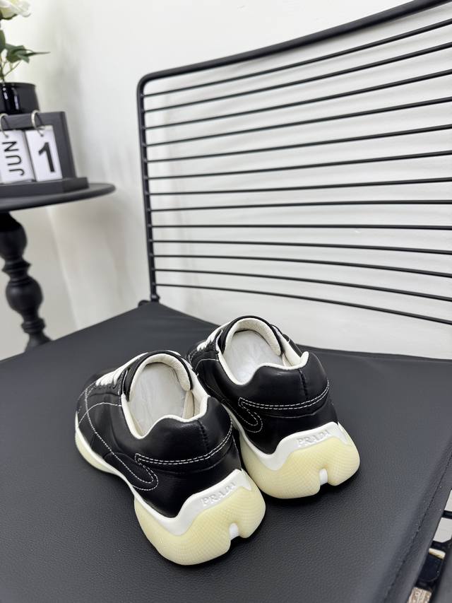 Factory Outlet: Size: 35-39 Women's 40. Customized, non-refundable. Prada Classic Casual Shoes Series. Round Toe Letter Casual Shoes. Original 1:1 Customization. This year's trendiest triangular logo slip-on British retro white sneakers, worn by many online celebrities. This shoe features cowhide color blocking and injection-molded triangular letter logo technology. It's very popular this year, perfect for both casual and sporty occasions. Material: Custom cowhide. Lining: Custom sheepskin. Insole: Custom sheepskin. Outsole: Original molded rubber outsole. Packaging: Original full packaging. Color: Updated simultaneously with the official website.