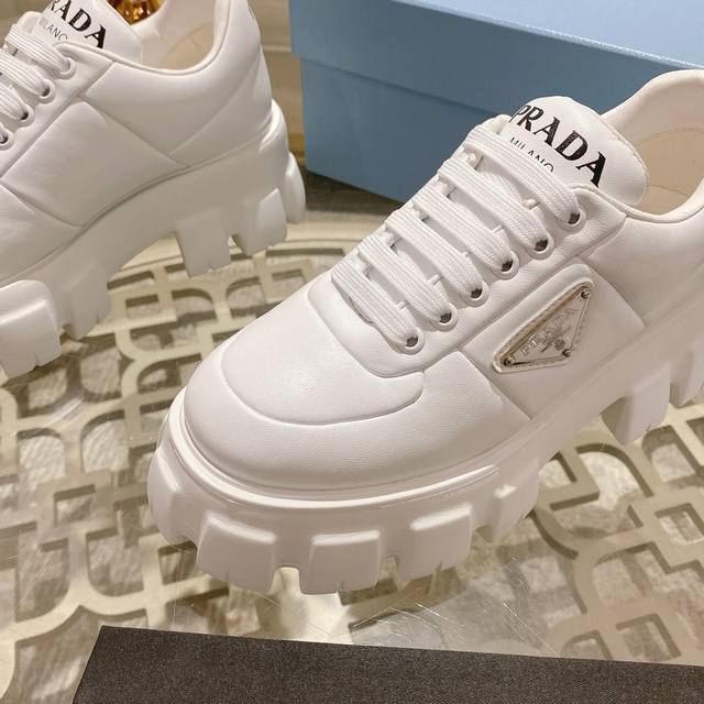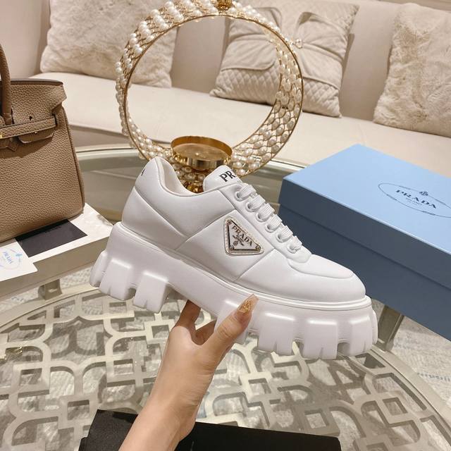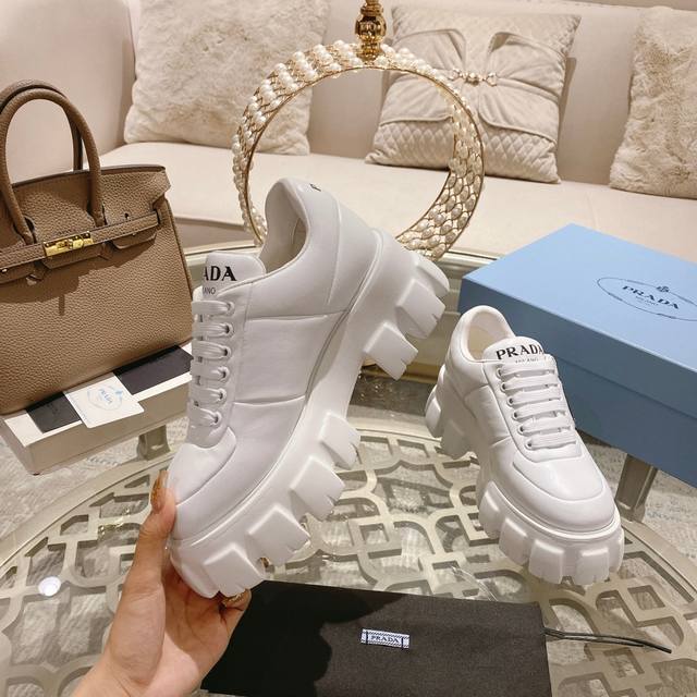 Factory price, high-end version! 1:1 original design, a perfect example of the Prada loafers series! The overall look is stylish, and this series is now available. These Prada platform shoes are a hot item this year. Fabric: Imported lambskin (soft and durable), with a sheepskin lining. The platform shoes are large, with a logo and a non-slip sole. Comfortable fit. Available in sizes 35-41