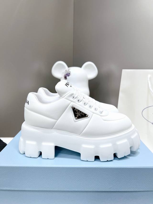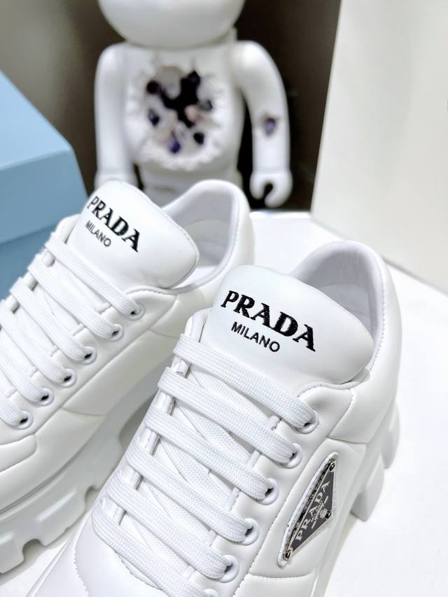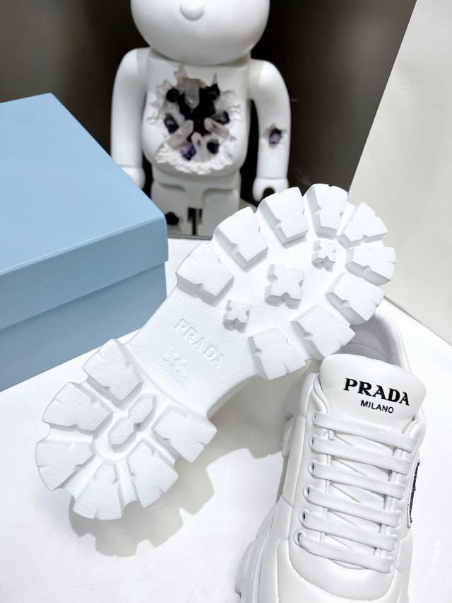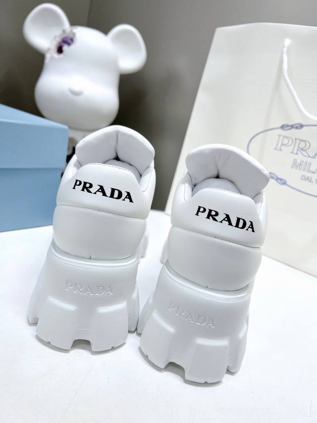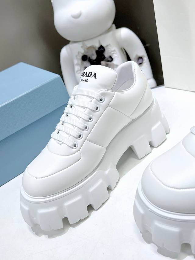 Prada New Black Super Soft First Layer Calfskin Thick-Soled Casual Leather Shoes, worn by Liu Wen and many other internet celebrities. This Prada platform shoe is very popular this year, offering both height and casual style. The clean design reflects meticulous attention to detail.