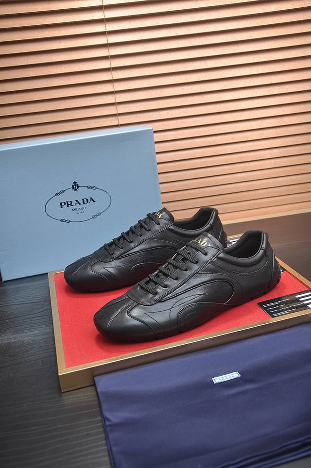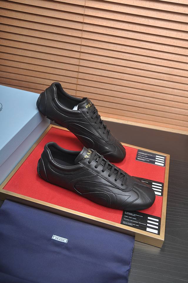 Factory price p Prada couple casual shoes, 1:1 replica, high-gloss suede upper with imported cowhide, silk sheepskin lining, rubber outsole, comfortable and soft to wear. Sizes: Women's 35-40, Men's 38-60.