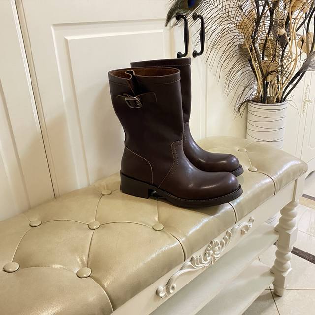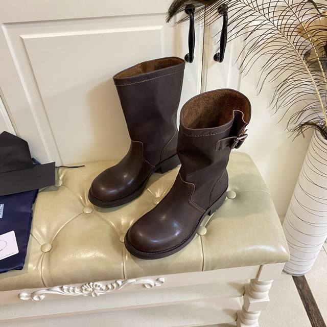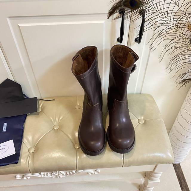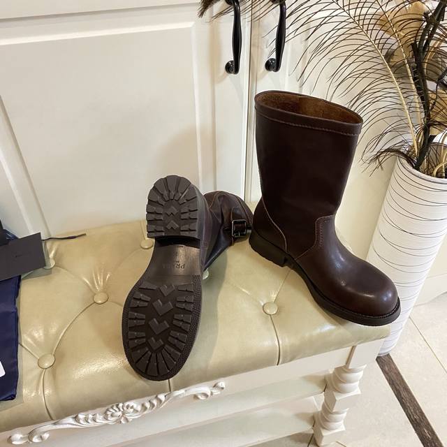 Factory Price P, Prada new Martin boots, riding boots, eco-friendly vegetable tanned cowhide, rubber sole, heel height approx. 4cm, sizes 35-40, size 41 custom-made, no returns or exchanges