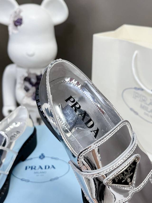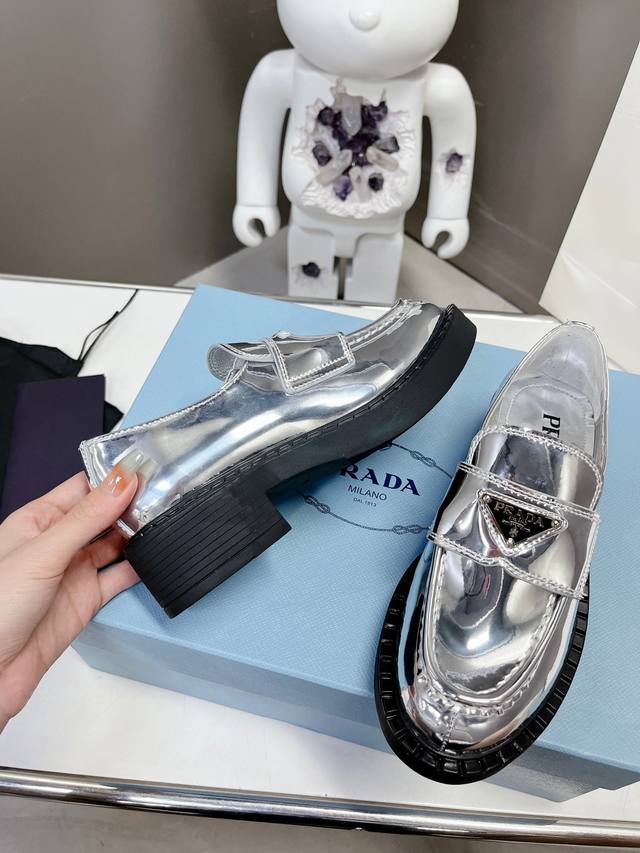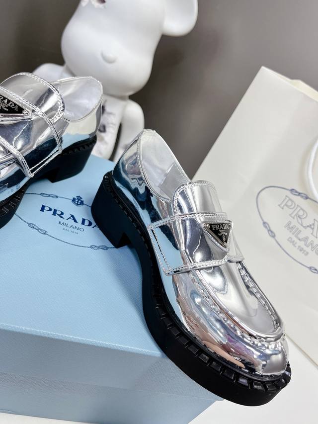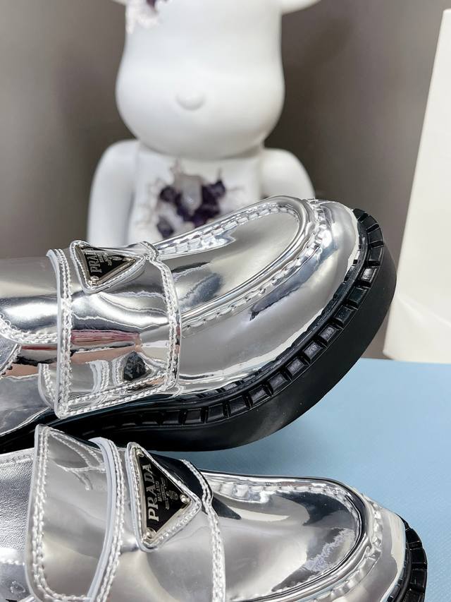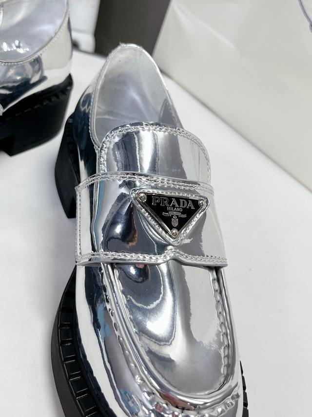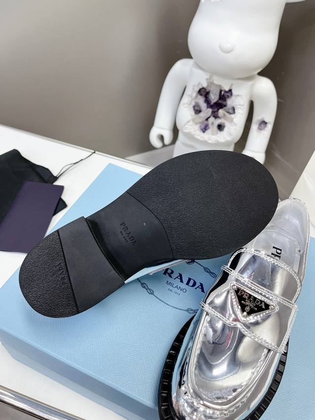 Factory Price P Prada Spring/Summer Gold and Silver Loafers New Arrival