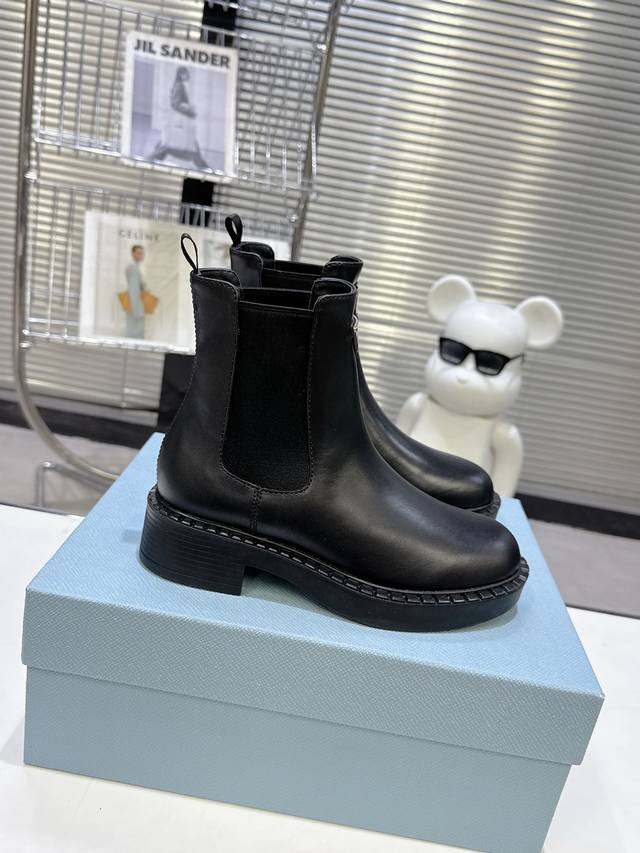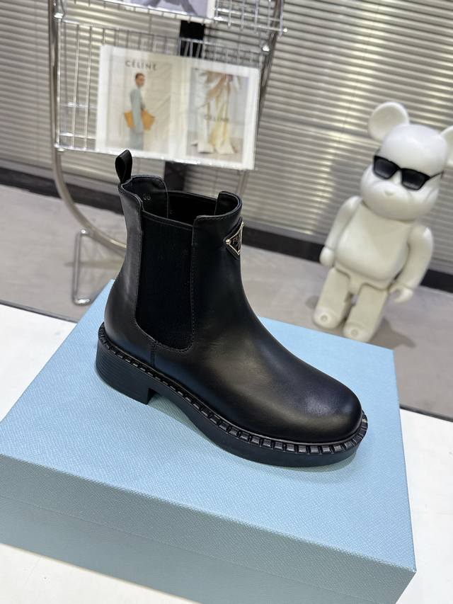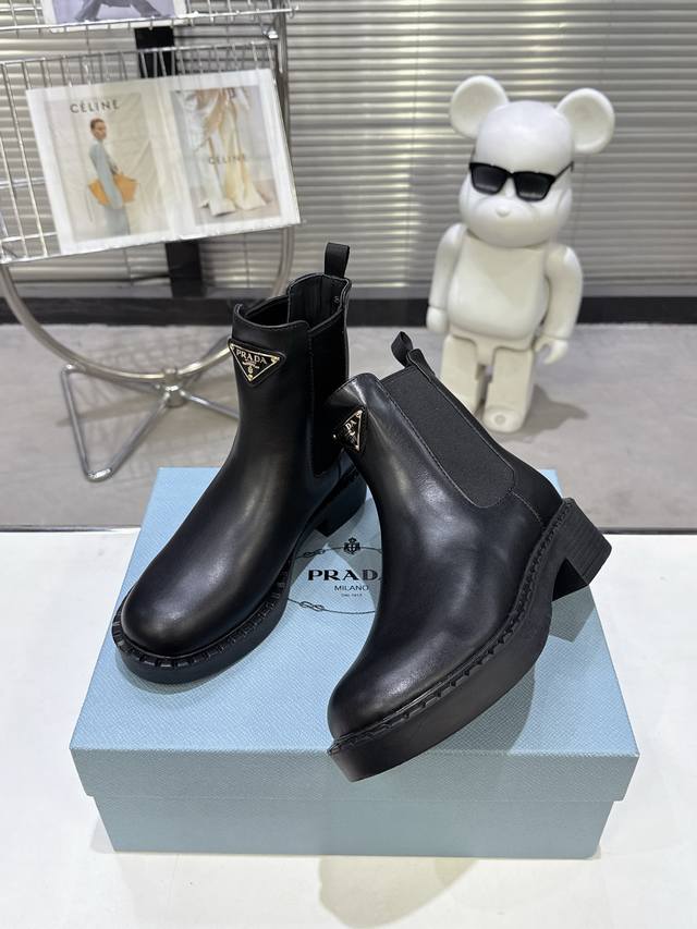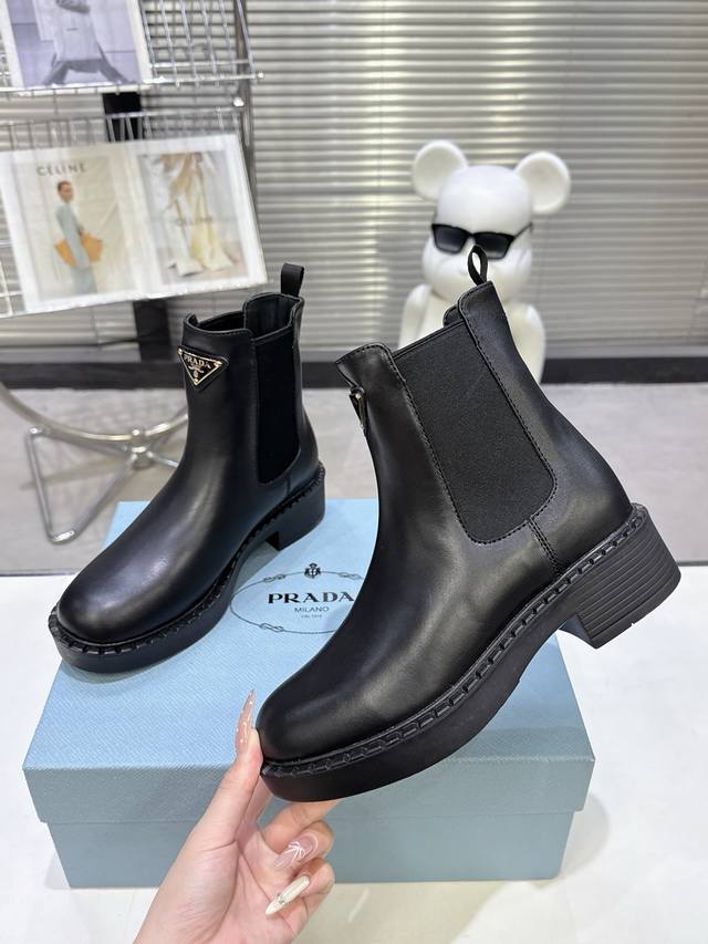 Factory Price pp DDD Prada Thick-Soled Retro Martin Boots Elastic Band Classic Thick Sole with Triangle Buckle Simple, Stylish and Versatile Material Cowhide Leather, Split Edge Beaded Cowhide DDD Insole Translucent Dyed Sheepskin Soft and Delicate, Comfortable to Wear, Rubber Mold Anti-Slip and Lightweight Outsole DDD Original Packaging Outsole DDD Standard Sizes: 35-40 41 Orders DDD