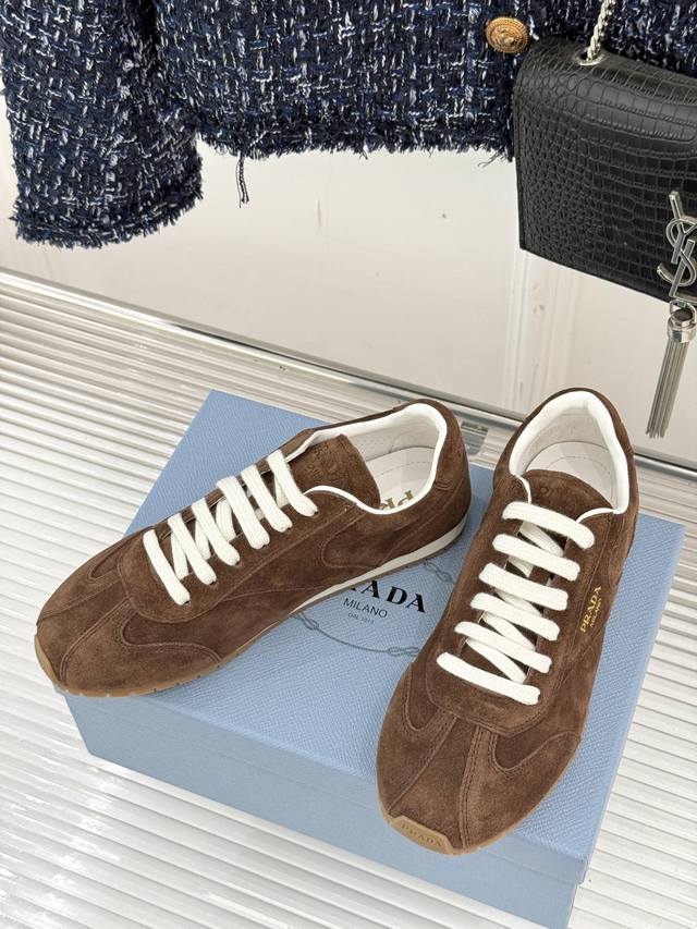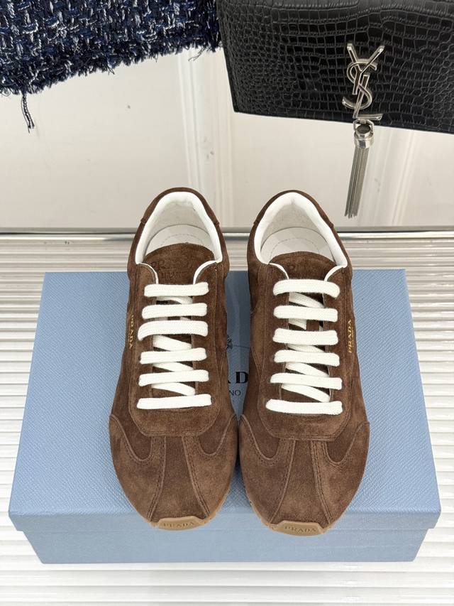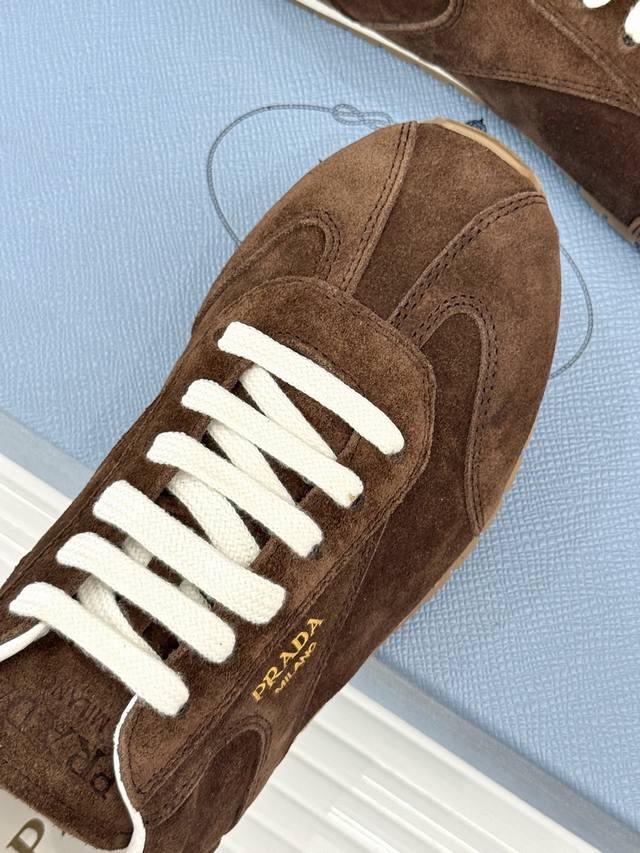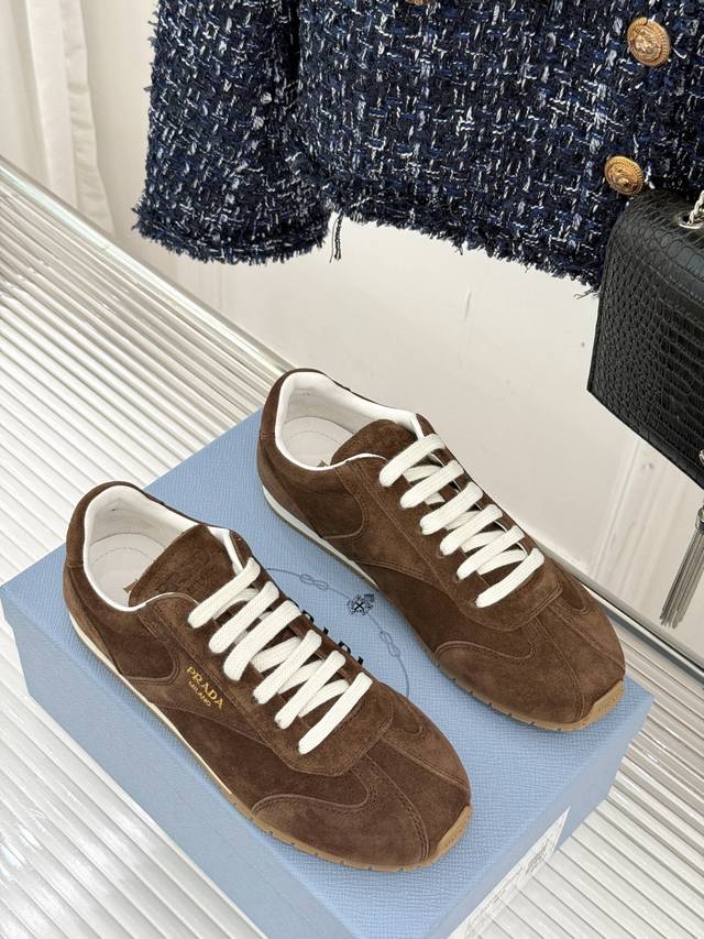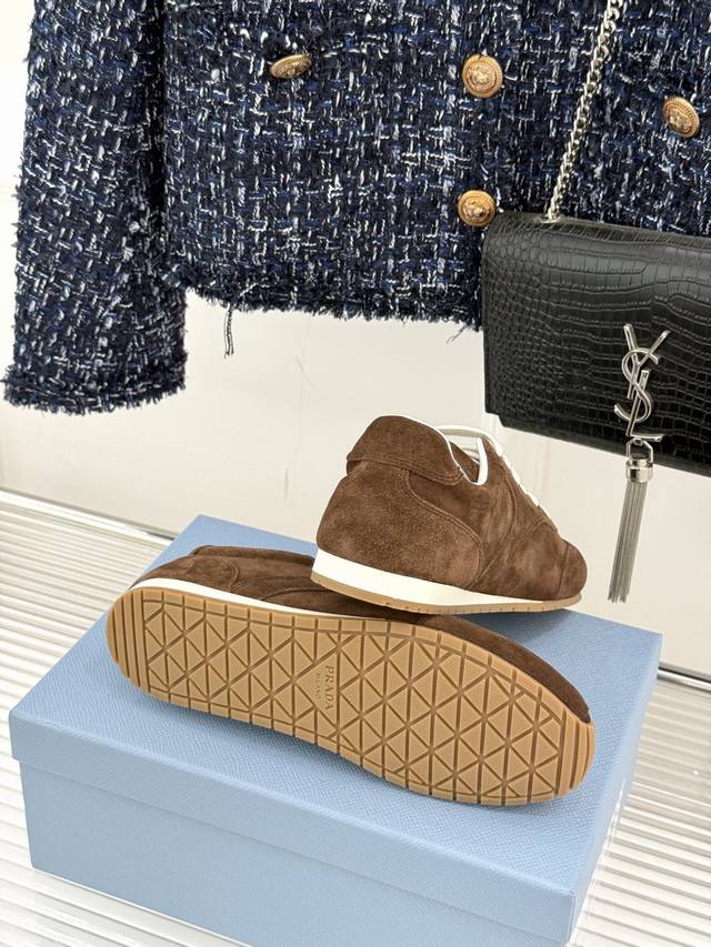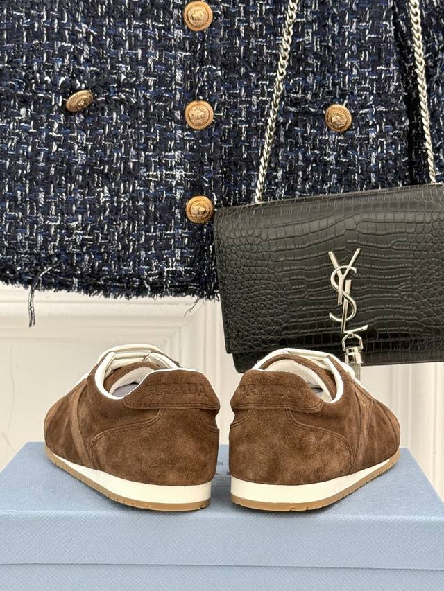 Factory Price: Prada 25Wf New Retro Casual Trainers. The iconic small lettering is discreetly inlaid on the side of the shoe. The metallic logo gleams with a cool radiance in the light. While unassuming, it shines like a bright star, imbued with elegance and elegance, silently conveying the brand's profound heritage and exceptional quality. The tongue and heel are thoughtfully padded with foam, creating a soft haven for the foot. This effectively reduces friction during walking, ensuring comfort and a smooth transition to long-lasting comfort. Paired with simple jeans and a white shirt, it creates a relaxed, everyday look. Paired with sharp suit pants and a sophisticated crop top, it instantly transforms you into a professional, confident presence. Wear it with a flowing dress for a stroll, showcasing a romantic and captivating feminine charm. Like a versatile fashion wizard, it can transform into a variety of fashionable styles for every occasion. Made from custom-made leather, the lining is made from mixed-breed sheepskin. Custom-made, non-slip outsoles are custom-made using the original mold. Sizes: 35-39, 40, custom-made.