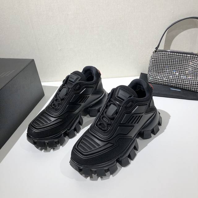 Factory Price: Prada: Latest Dad Shoe Series: Material: Imported space cotton + KPU injection molding; Lining: Imported silk sheepskin lining + fabric; Outsole: Original 1:1 molded rubber foam ultra-light outsole; Packaging: 1:1 heel height 5cm; Sizes: 35-44