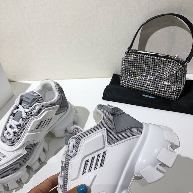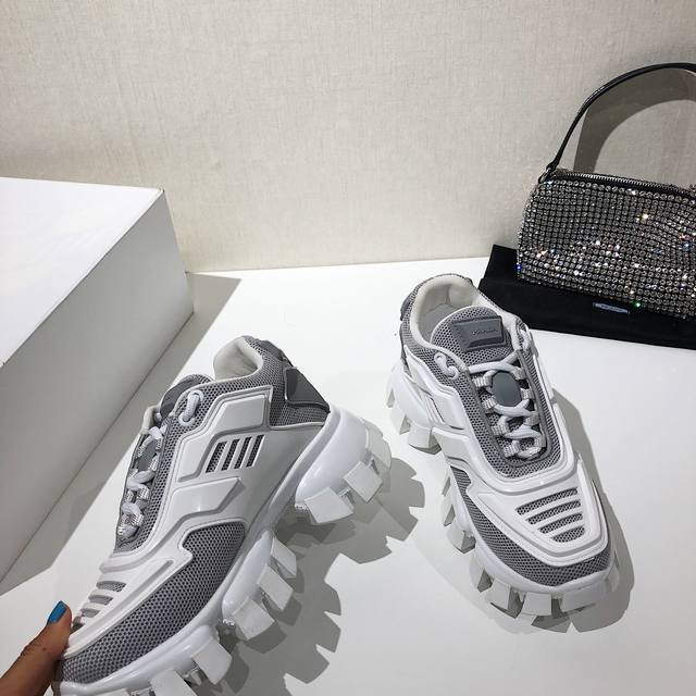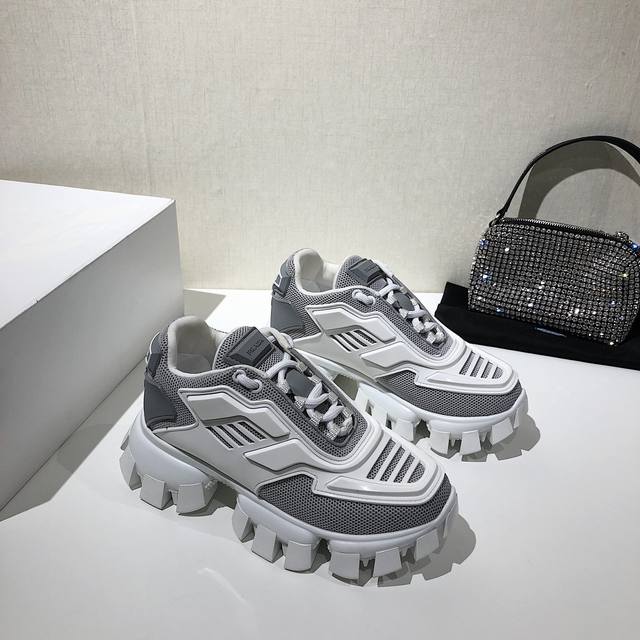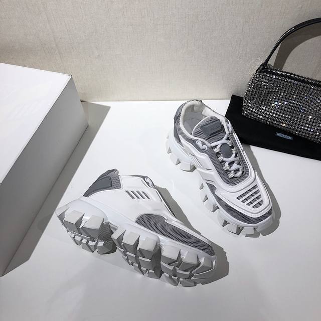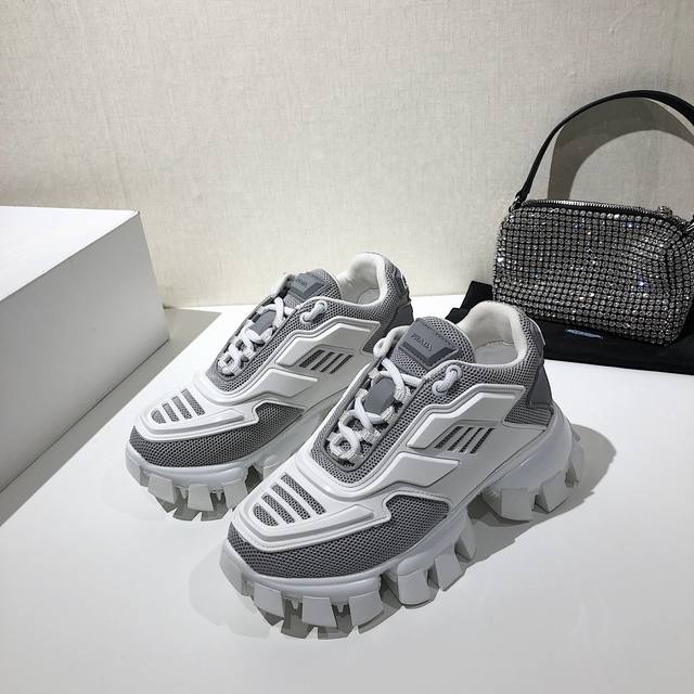 Factory Price: Prada: Latest Dad Shoe Series: Material: Imported space cotton + KPU injection molding; Lining: Imported silk sheepskin lining + fabric; Outsole: Original 1:1 molded rubber foam ultra-light outsole; Packaging: 1:1 heel height 5cm; Sizes: 35-44