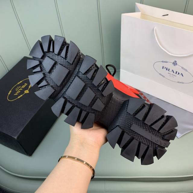 Factory Price: Prada: Latest Dad Shoe Series: Material: Imported space cotton + KPU injection molding; Lining: Imported silk sheepskin lining + fabric; Outsole: Original 1:1 molded rubber foam ultra-light outsole; Packaging: 1:1 heel height 5cm; Sizes: 35-44