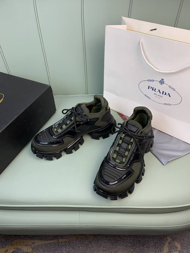 Factory Price: Prada: Latest Dad Shoe Series: Material: Imported space cotton + KPU injection molding; Lining: Imported silk sheepskin lining + fabric; Outsole: Original 1:1 molded rubber foam ultra-light outsole; Packaging: 1:1 heel height 5cm; Sizes: 35-44