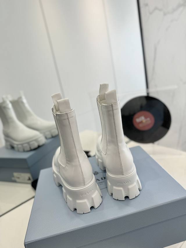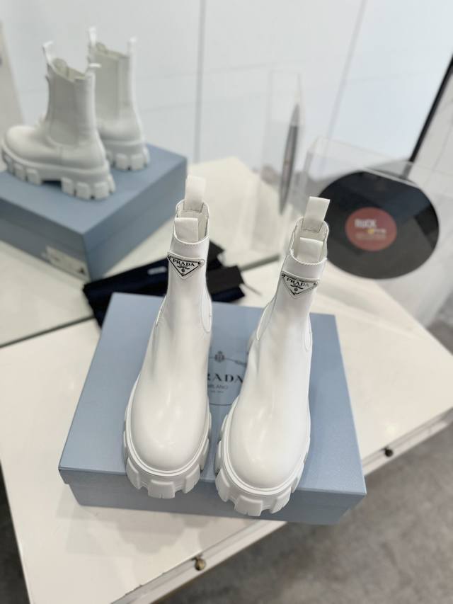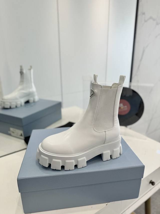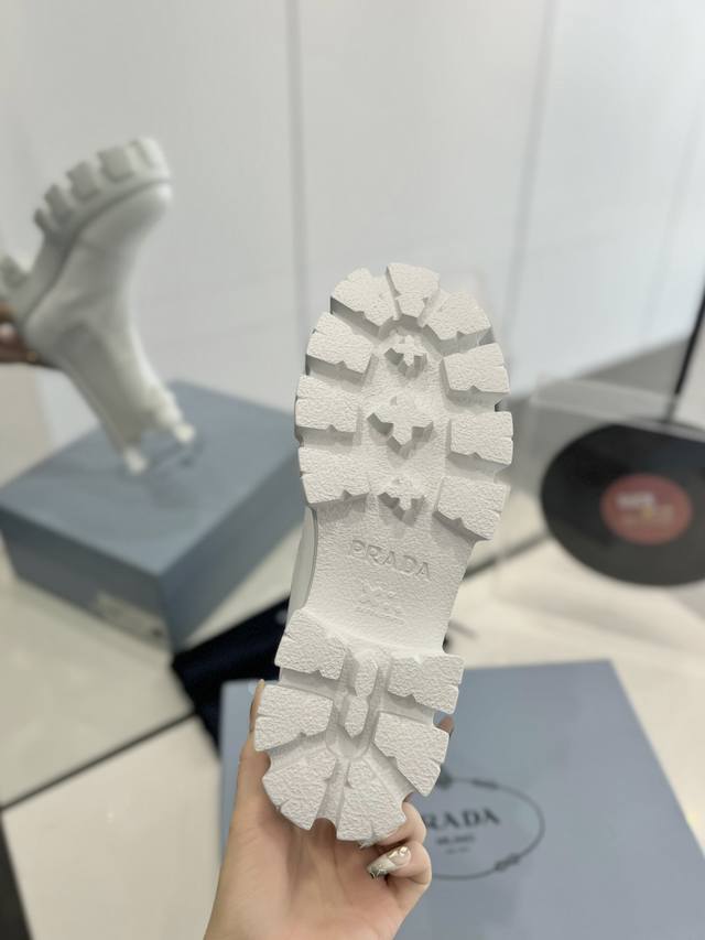 Recently, Prada's innovative boots have been incredibly popular! Purchased from Europe, 1:1 replica of the Y version. High-tenacity TPU sole with a 6cm heel. All materials and craftsmanship are consistent with the Y version. Short boots and single shoes are released simultaneously, both featuring split-edge calfskin and patent leather! Split-edge calfskin, patent leather