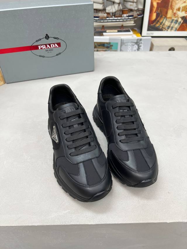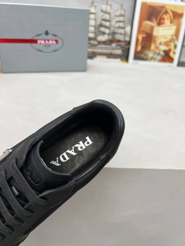 Factory Price: Prada men's shoes, best-selling item in department stores, same as the official website, high-quality delivery. Material: Original cowhide leather. Lining: Cowhide insole + cowhide lining. Outsole: Original rubber sole. Sizes: 38-45. Size 45 is custom-made and non-refundable.