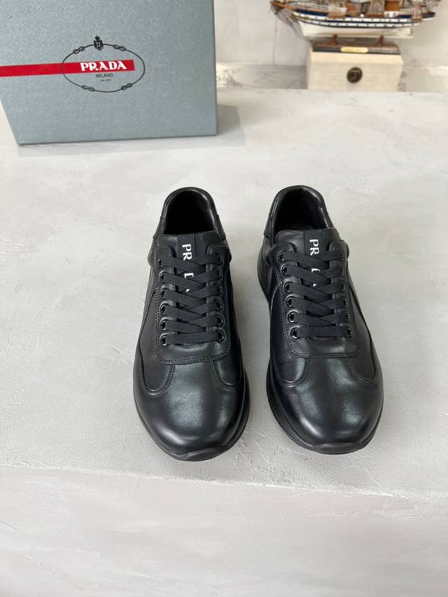 Factory Price: Prada men's shoes, best-selling item in department stores, same as the official website, high-quality delivery. Material: Original cowhide leather. Lining: Cowhide insole + cowhide lining. Outsole: Original rubber sole. Sizes: 38-45. Size 45 is custom-made and non-refundable.