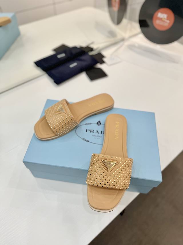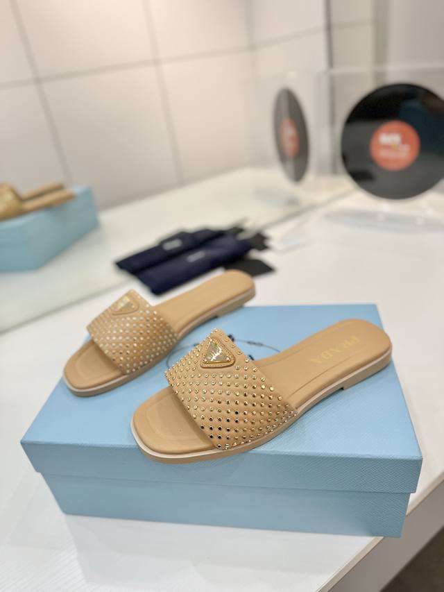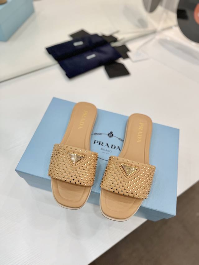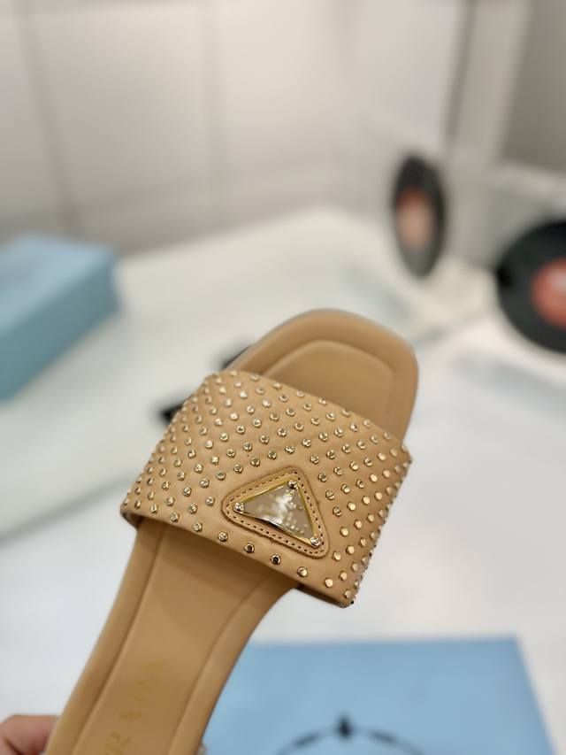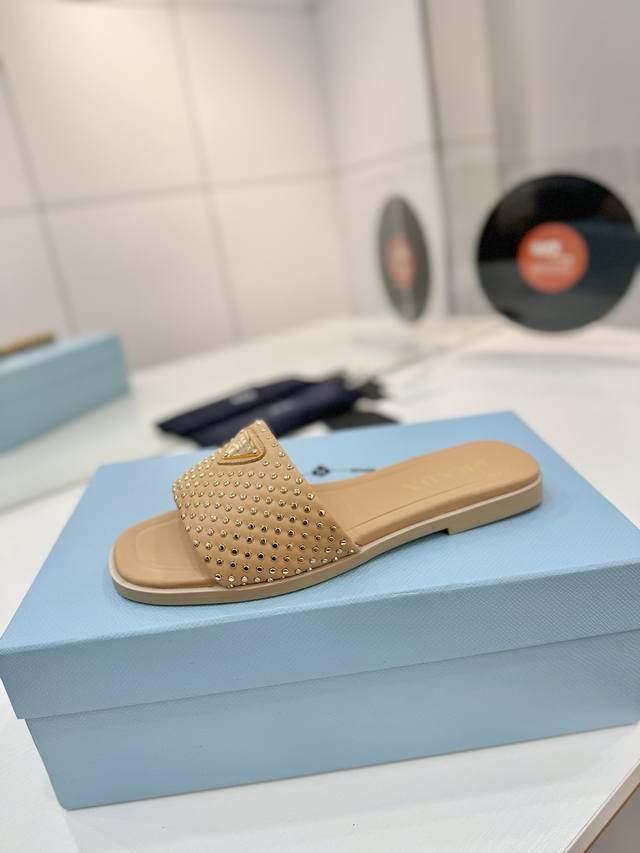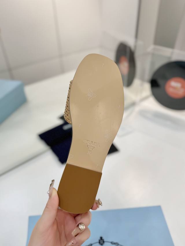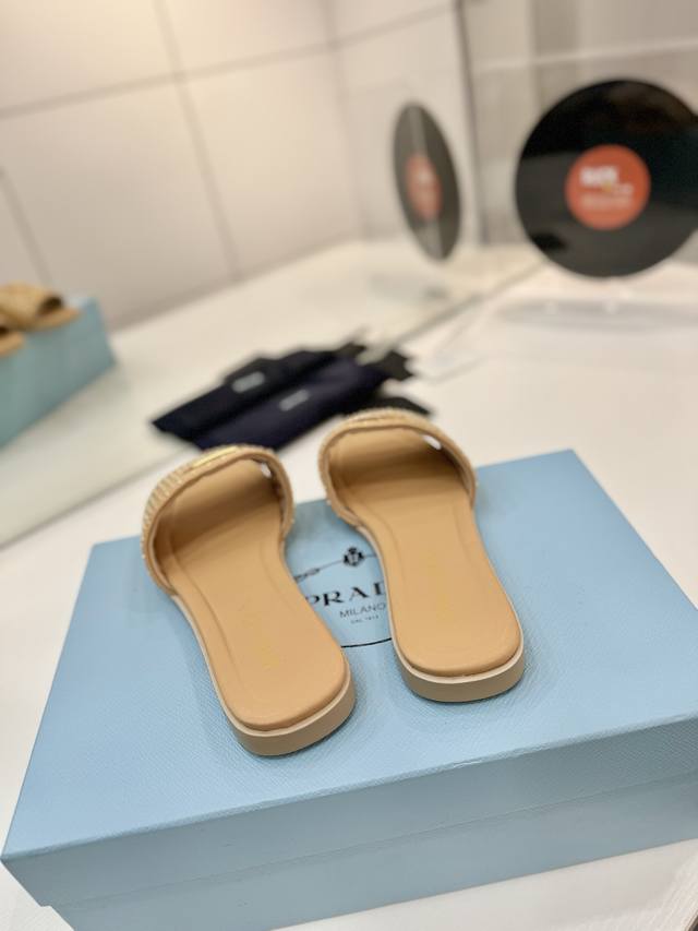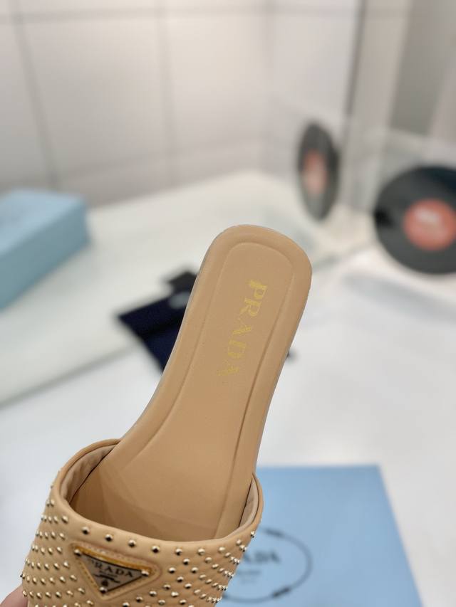 Factory price Prada woven slippers Ddd New Spring/Summer modern style lines and original architectural volume define these intricately charming DDD Prada's iconic triangle geometry inspires the heel design, highlighting the tapered and graceful curves with a unique modern touch. DDD Upper: Original cowhide studded upper DDD Lining: Lining, insole cowhide DDD Outsole: Italian genuine leather outsole DDD Sizes: 35-42 40 41 42 Custom made DDD