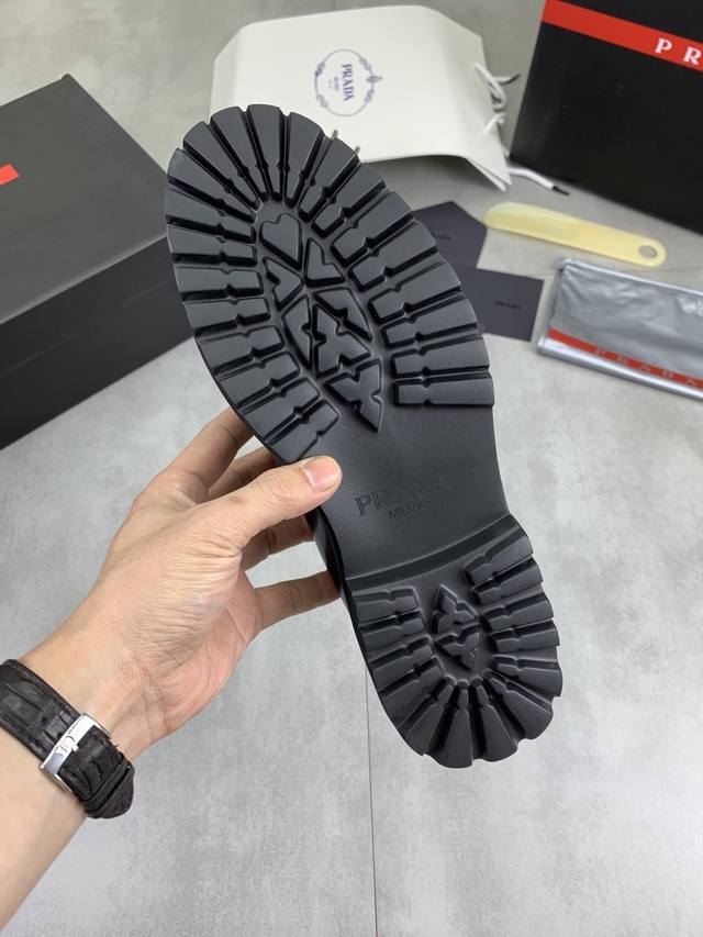 Factory price, real price, Prada top-tier version, new Prada casual leather shoes, original purchase, developed and manufactured. Prada men's classic series, technological breathable fabric paired with cowhide, casual sports shoes, casual footwear, sports dad shoes, combining high-tech breathable materials and cowhide, side exclusive Prada button decoration, outsole full of Prada italic design and vibrant colors to show vitality, continuing the brand's design inspiration. Lightly stroll in the city, feel unrestrained comfort. Beautiful packaging included. Material: Original custom calfskin with breathable material. Lining: Cowhide lining, cowhide insole. Outsole: Open mold TPU foam material. Sole thickness: 3.5cm. Size: Men's 38-45, black and burgundy colors available.
