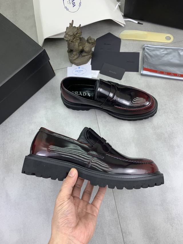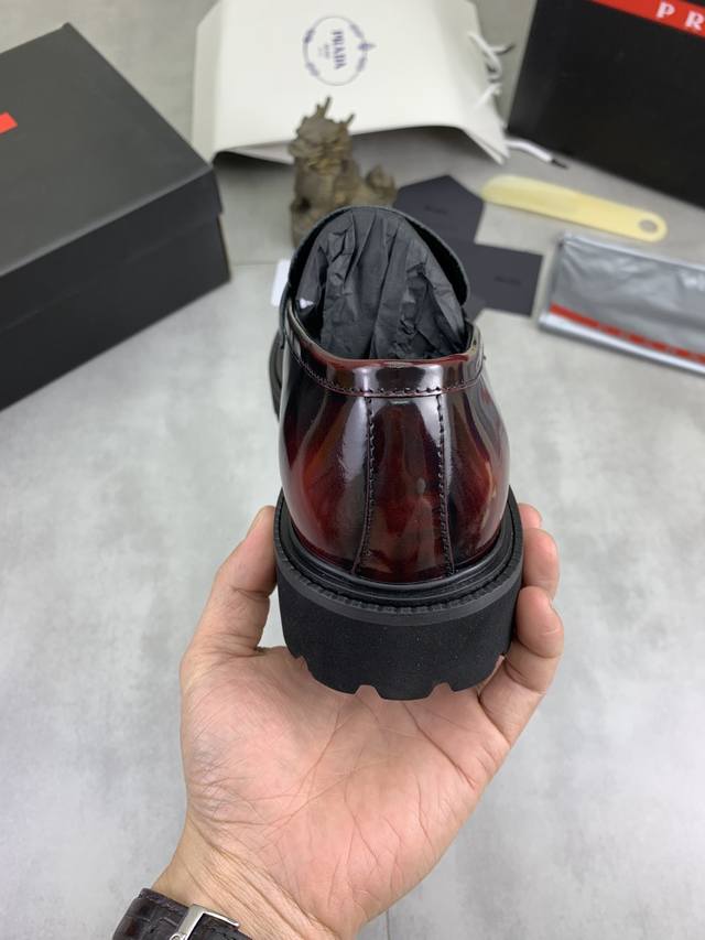 Factory price, real price, Prada top-tier version, new Prada casual leather shoes, original purchase, developed and manufactured. Prada men's classic series, technological breathable fabric paired with cowhide, casual sports shoes, casual footwear, sports dad shoes, combining high-tech breathable materials and cowhide, side exclusive Prada button decoration, outsole full of Prada italic design and vibrant colors to show vitality, continuing the brand's design inspiration. Lightly stroll in the city, feel unrestrained comfort. Beautiful packaging included. Material: Original custom calfskin with breathable material. Lining: Cowhide lining, cowhide insole. Outsole: Open mold TPU foam material. Sole thickness: 3.5cm. Size: Men's 38-45, black and burgundy colors available.