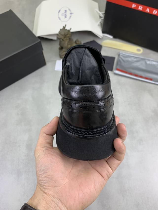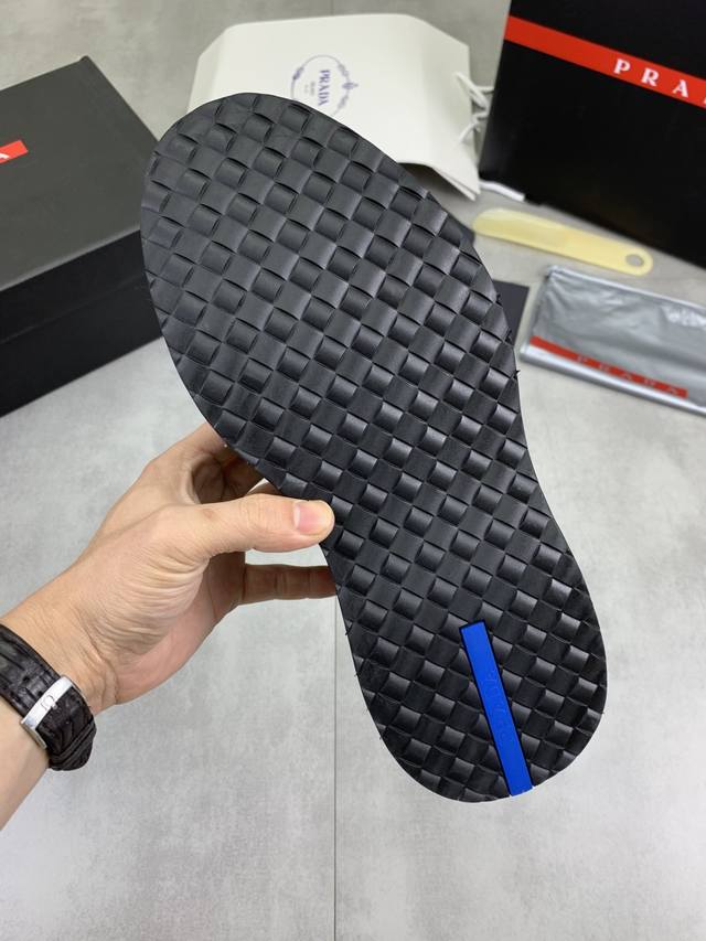Factory price, real price, Prada top-tier version, new Prada casual leather shoes, original purchase, developed and manufactured. Prada men's classic series, technological breathable fabric paired with cowhide, casual sports shoes, casual footwear, sports dad shoes, combining high-tech breathable materials and cowhide, side exclusive Prada button decoration, outsole full of Prada italic design and vibrant colors to show vitality, continuing the brand's design inspiration. Lightly stroll in the city, feel unrestrained comfort. Beautiful packaging included. Material: Original custom calfskin with breathable material . Lining: Cowhide lining, cowhide insole. Outsole: Open mold TPU foam material. Sole thickness: 3.5Cm. Size: Men's 38-45, black and burgundy colors available.