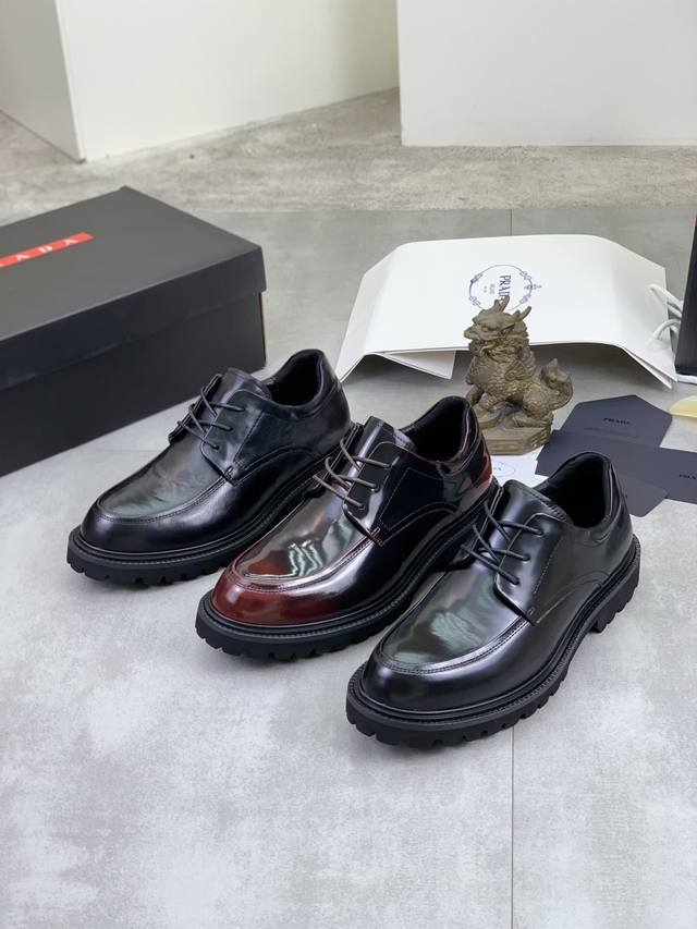 Factory price, real price, Prada top-tier version, new Prada casual leather shoes, original purchase, developed and manufactured. Prada men's classic series, technological breathable fabric paired with cowhide, casual sports shoes, casual footwear, sports dad shoes, combining high-tech breathable materials and cowhide, side exclusive Prada button decoration, outsole full of Prada italic design and vibrant colors to show vitality, continuing the brand's design inspiration. Lightly stroll in the city, feel unrestrained comfort. Beautiful packaging included. Material: Original custom calfskin with breathable material. Lining: Cowhide lining, cowhide insole. Outsole: Open mold TPU foam material. Sole thickness: 3.5Cm. Size: Men's 38-45, black and burgundy colors available.