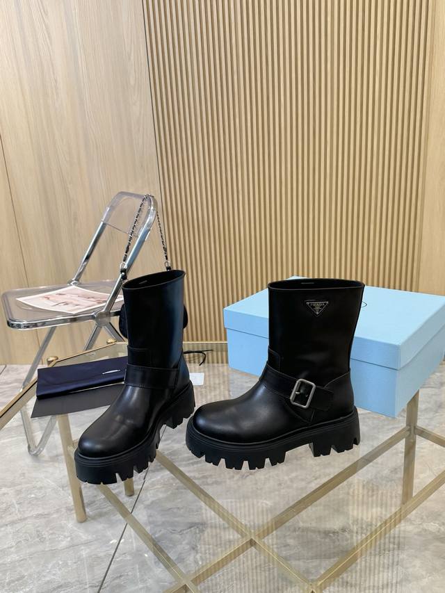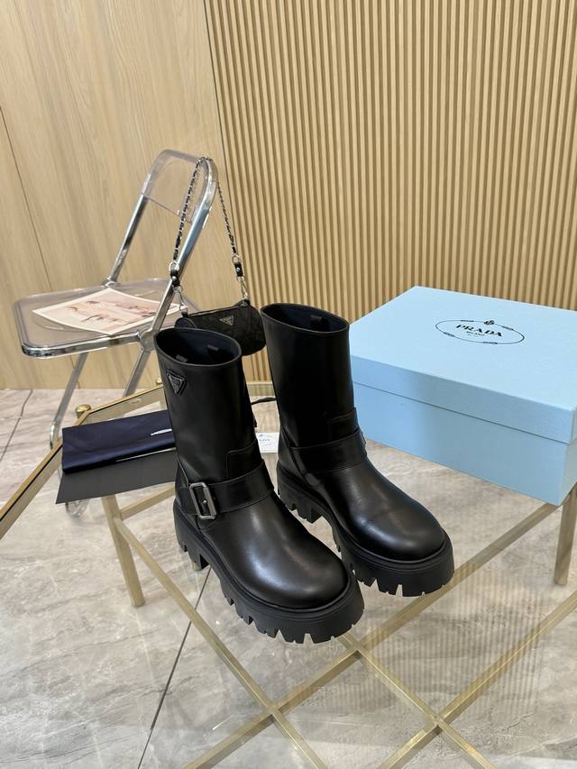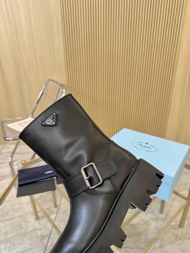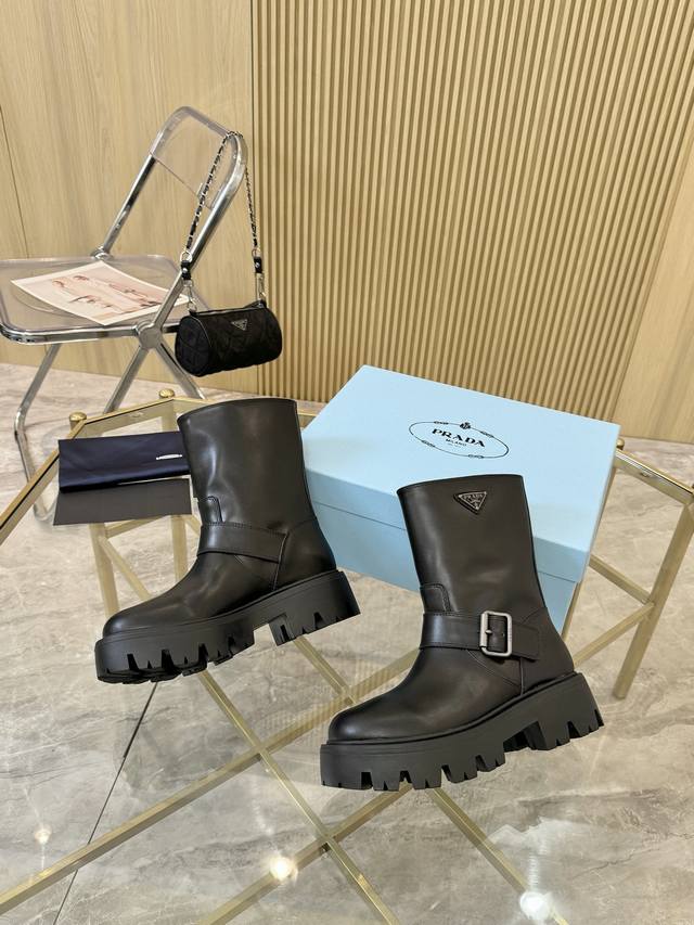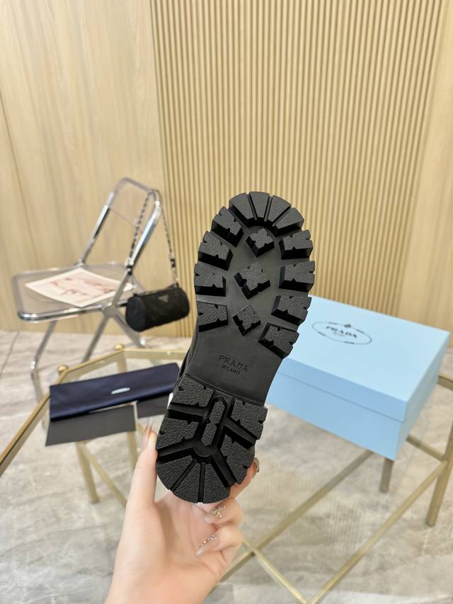 Factory-made p-leather cowhide leather prada25Ss classic triangle logo slip-on boots. A must-have for women this winter! These boots are so cool! They're so stylish and slim, and they're the perfect balance of style and style. Upper: cowhide leather. Lining: cowhide leather. Outsole: Original molded outsole. Sizes: 35-41. 41 made to order.